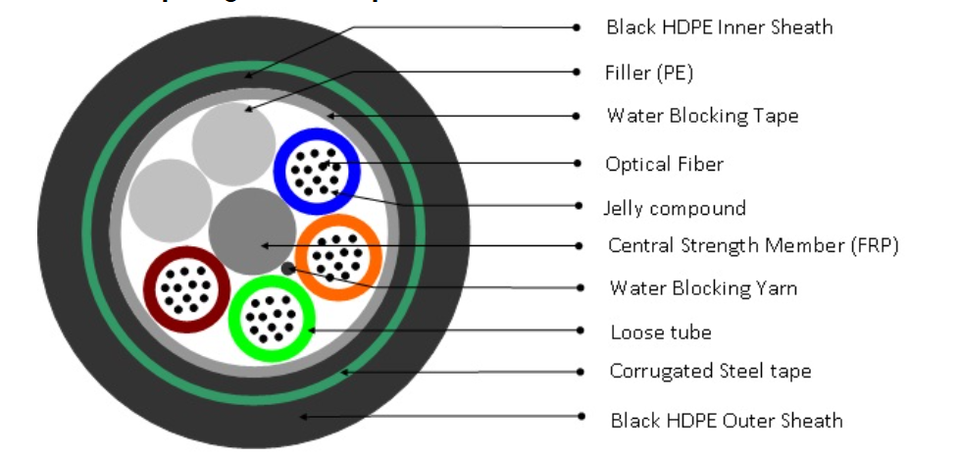 Cable de fibra óptica G.652D de conectividad confiable hecho en Vietnam 6 8 12 16 24 36 48 96 Cable exterior enterrado directo de núcleo asequible