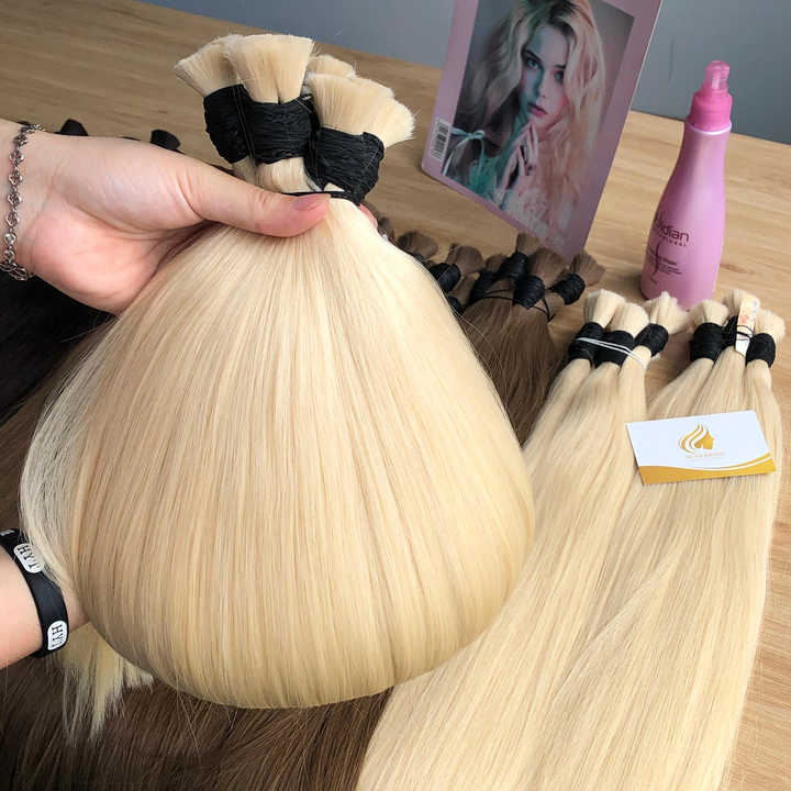 Extensiones de Cabello Remy Hechas en Vietnam, Doble Trama, Virgen, Sedoso, Liso, Ondulado, Rubio, Alta Calidad, 100% de un Solo Donante, Decoloración