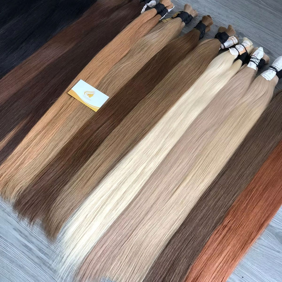 Extensiones de cabello Remy hechas en Vietnam Doble dibujado Virgen Sedoso Onda recta Rubio Cabello teñido Blanqueamiento 100% Cinta de donante único