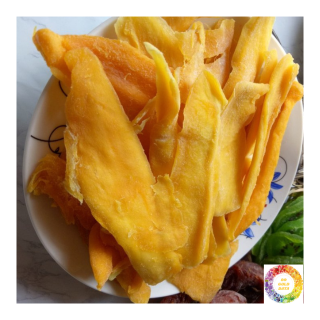 Bocadillo de mango de Vietnam para exportación, fruta dorada seca suave, etiqueta limpia, sin aditivos, rodajas sin azúcar, pedido a granel