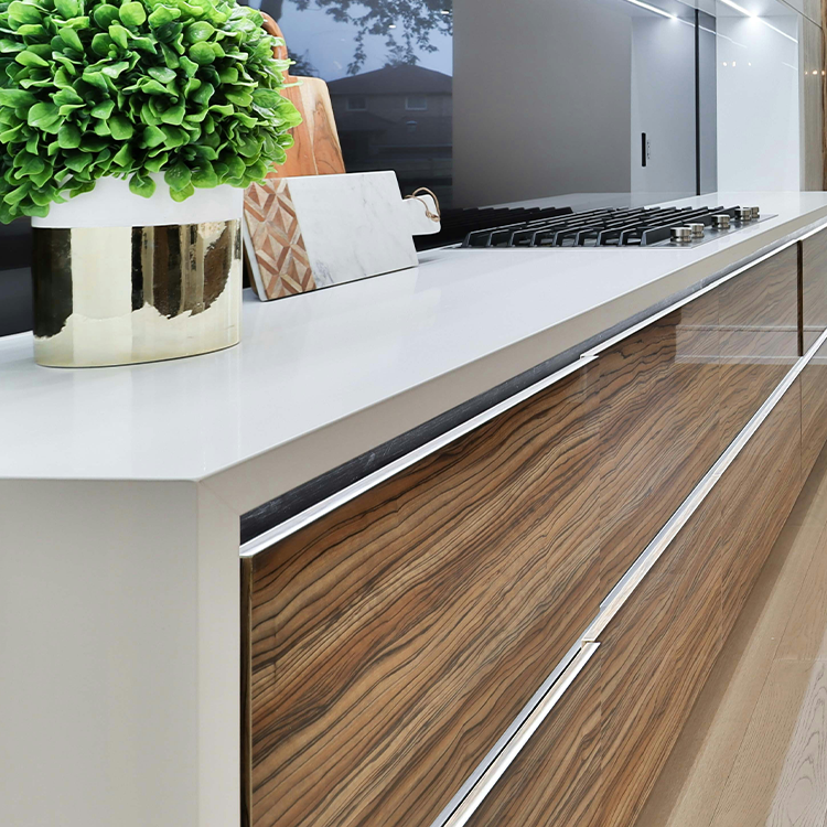 Fabricante de Vietnam, pulido sutil, antiderrames, proyecto de integración sin costuras, Villa, piedra de cuarzo artificial, Península de cocina