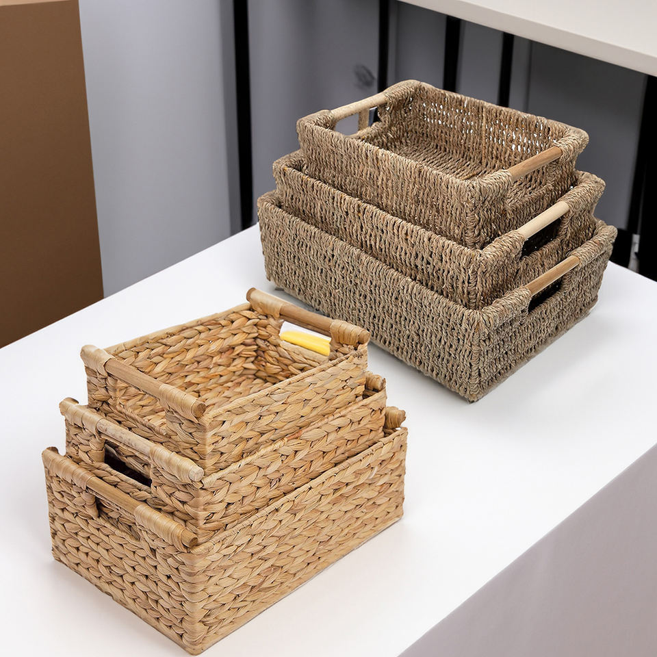 Cestas de almacenamiento hechas a mano de Vietnam, organizador duradero ecológico, diseño de ratán Natural para decoración rústica de cafetería-SB2031