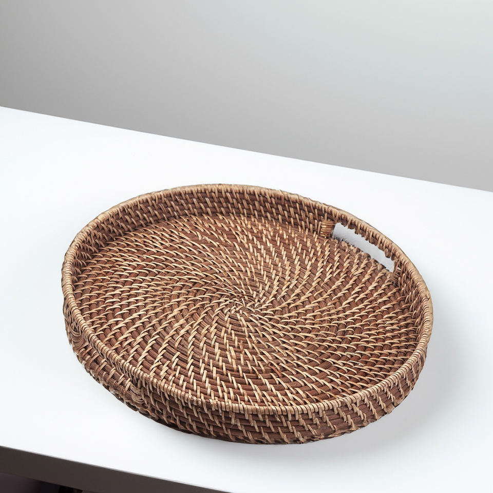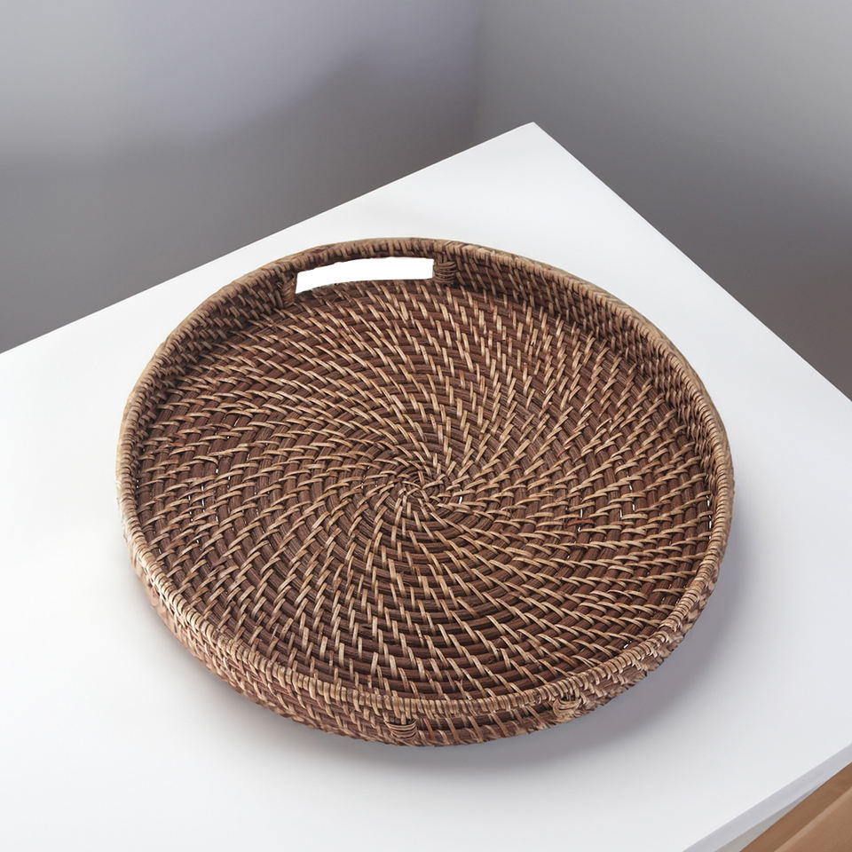 Bandejas redondas de bambú respetuosas con el medio ambiente de Vietnam, bandeja para servir hecha a mano con patrón de ratán rústico para interiores de hoteles-SR2063