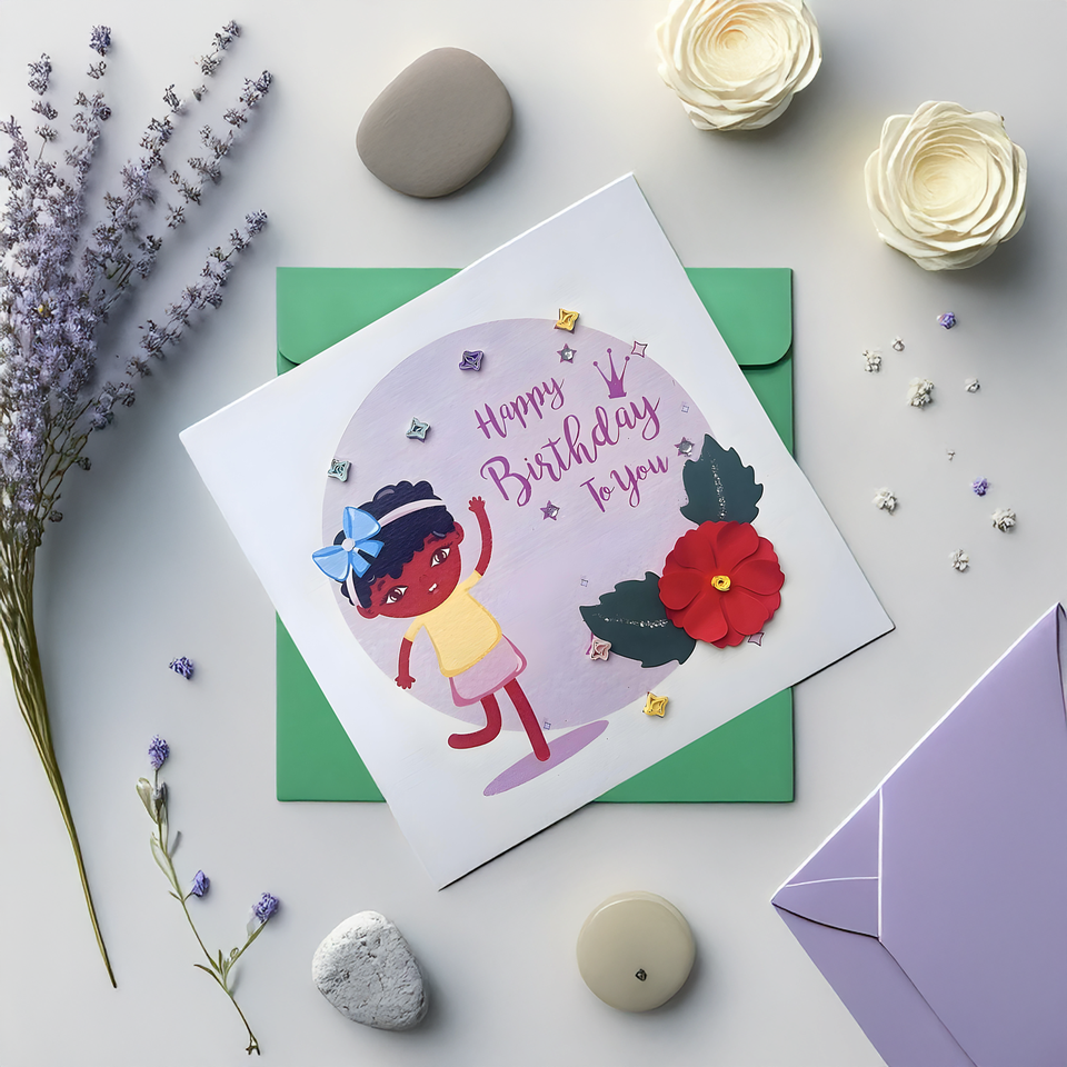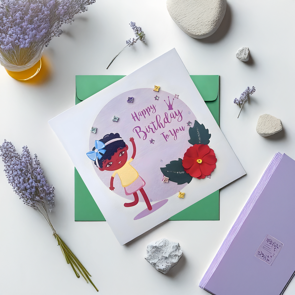 Tarjeta de felicitación de papel cuadrado ecológico de Vietnam con estampado dorado y diseño de filigrana para el feliz cumpleaños de la Gift-GBV026