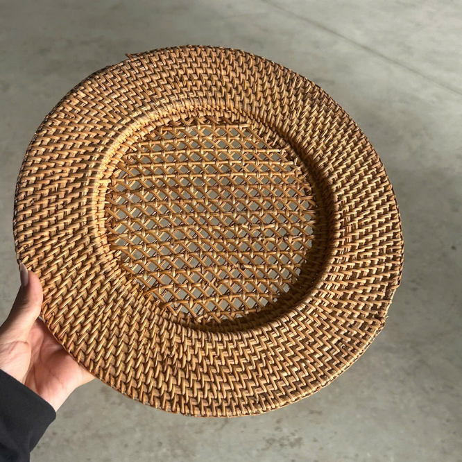 Plato de ratán rústico vietnamita de 33 pulgadas para uso comercial en hostelería y creación de ambientes acogedores 99 Gold Data