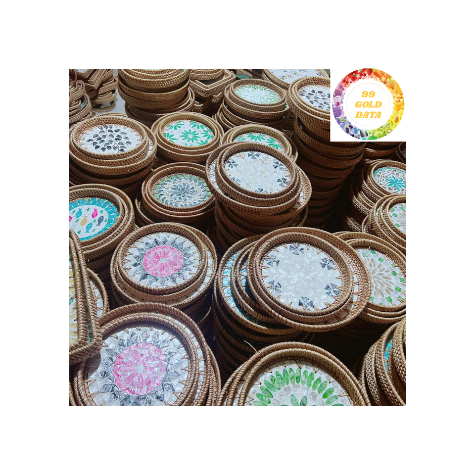 Bandeja de ratán de estilo rústico de Vietnam hecha a mano para almacenar utensilios de cocina y uso diario en el hogar