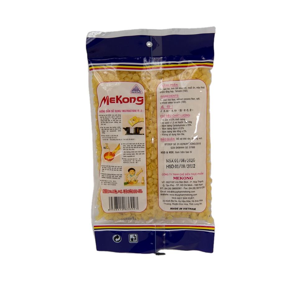 Ingredients:Rice flour, cassava flour, salt, food coloring