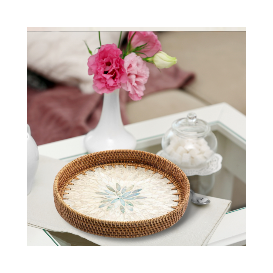 Keyword:Mother of Pearl Rattan Tray