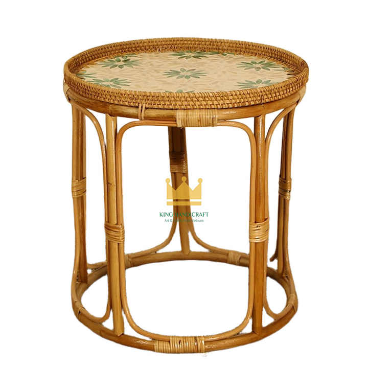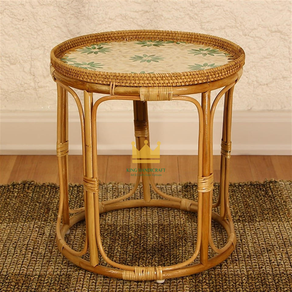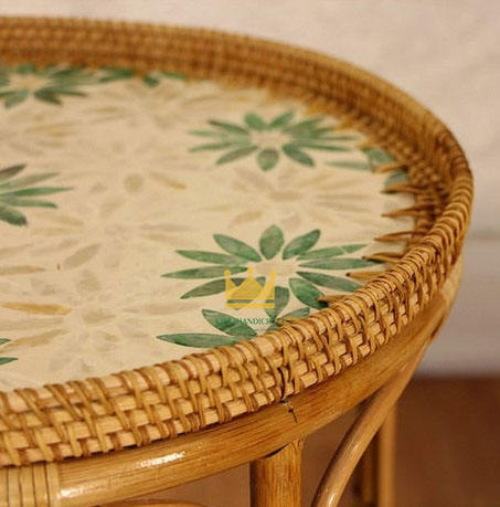 Mesa de Centro de Mimbre y Ratán Vietnamita con Bandeja de Nácar, Diseño Moderno para Sala de Estar, Hotel, Villa, Muebles para el Hogar