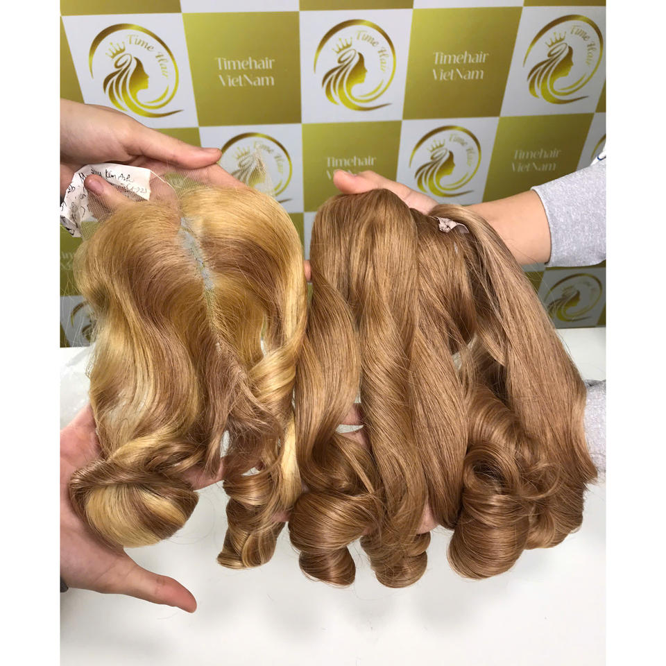 Extensiones de cabello humano Remy virgen marrón claro vietnamita 100% trama doble Super doble calidad de lujo rizos hinchables Color en stock