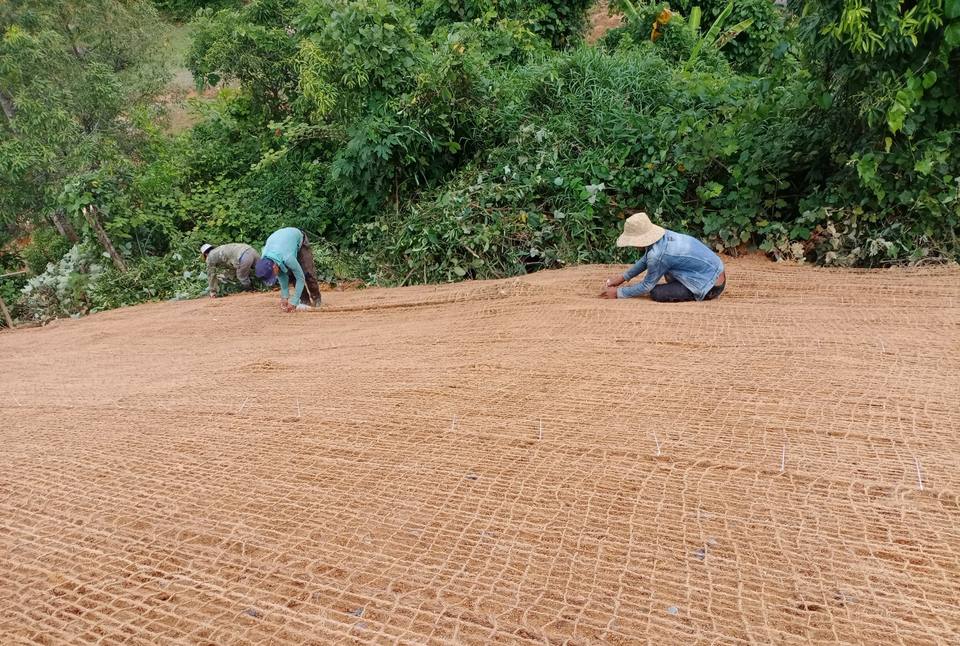 Fábrica vietnamita fabricada Hello Coir Net-Cuerda tejida de malla tejida Geotextiles de fibra cruda Hello Vietnam-The Coir Net Netting