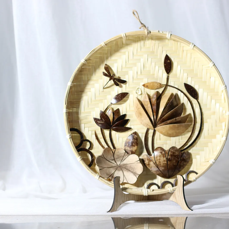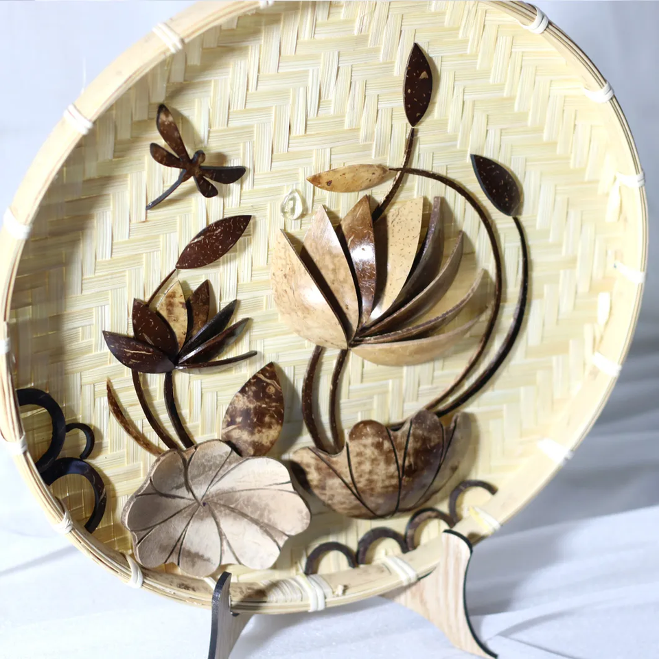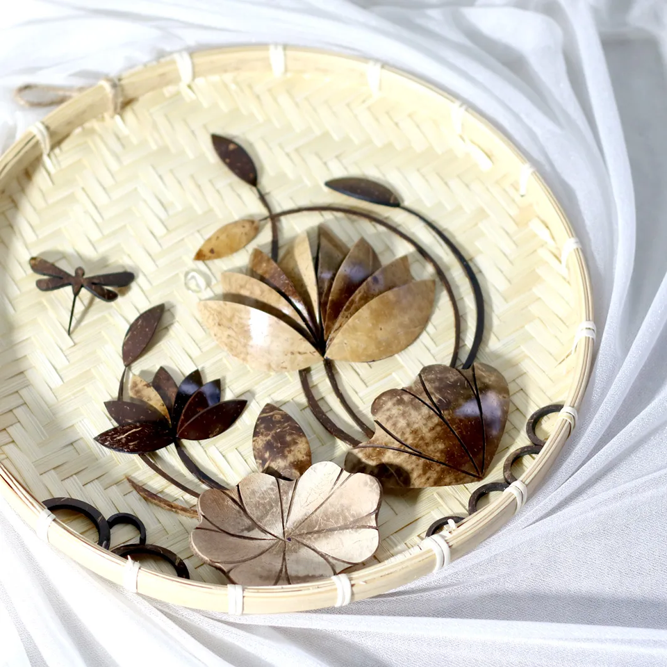 Viet Fargimex, diseño tradicional hecho a mano, incrustaciones de cáscara de coco en tamiz de bambú, tapices de pared personalizados, pedidos al por mayor disponibles