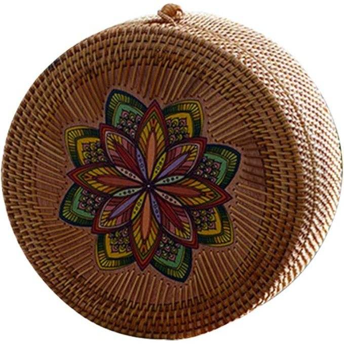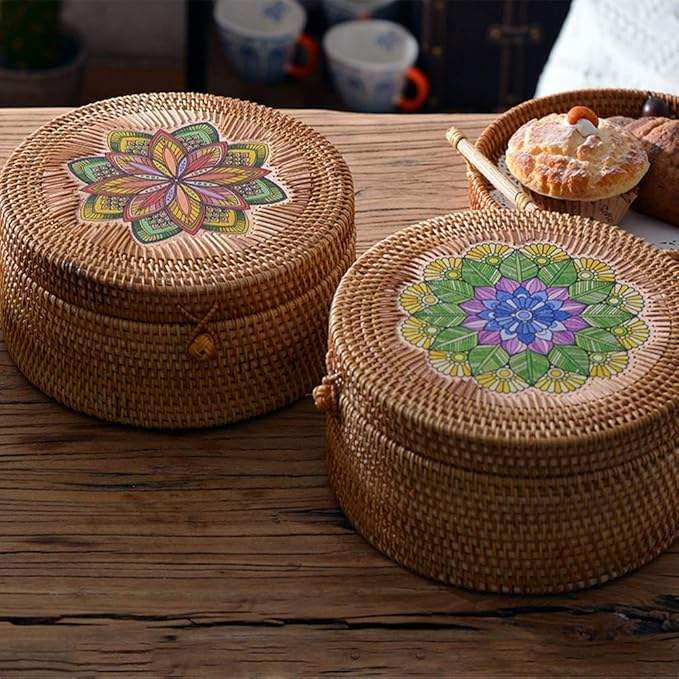 Cajas de almacenamiento decorativas de ratán tejidas a mano vietnamitas, cuencos redondos multiusos con tapa para organizador de té, contenedor para otros usos
