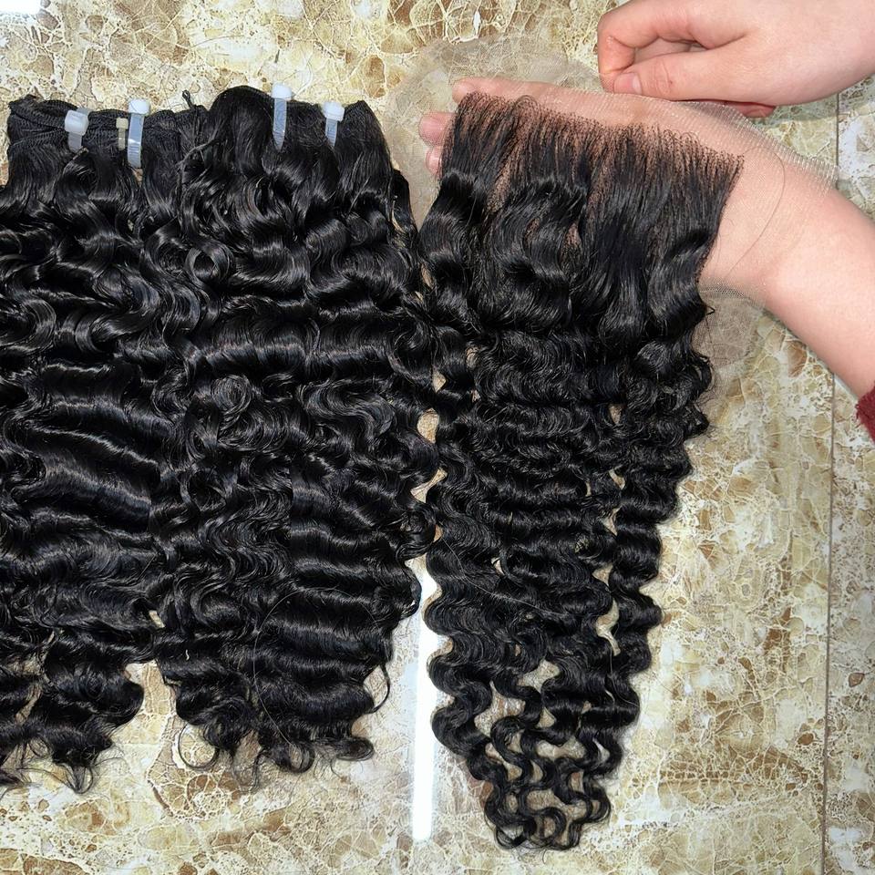 Cabello Remy humano vietnamita, rizos birmanos, sedoso, doble dibujado, paquetes de cabello crudo, conjunto de cierre, entrega a través de DHL 100%, cabello virgen