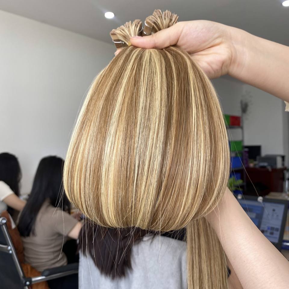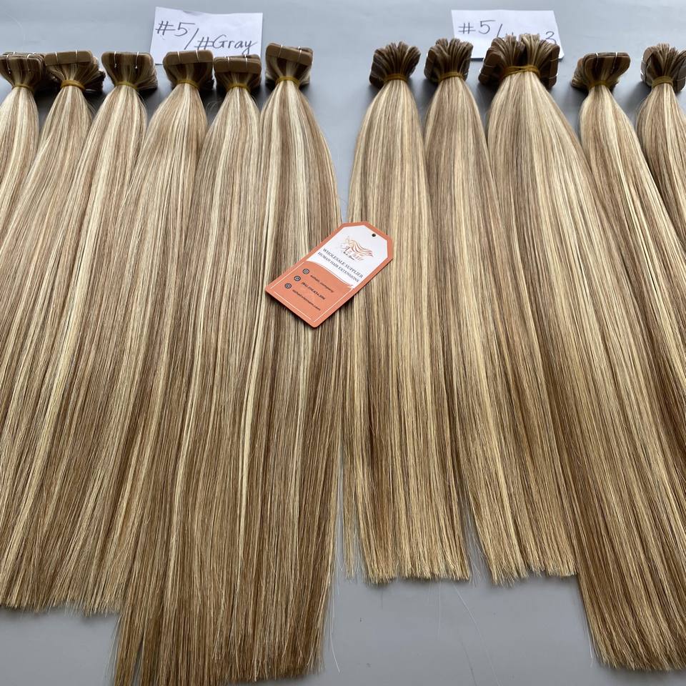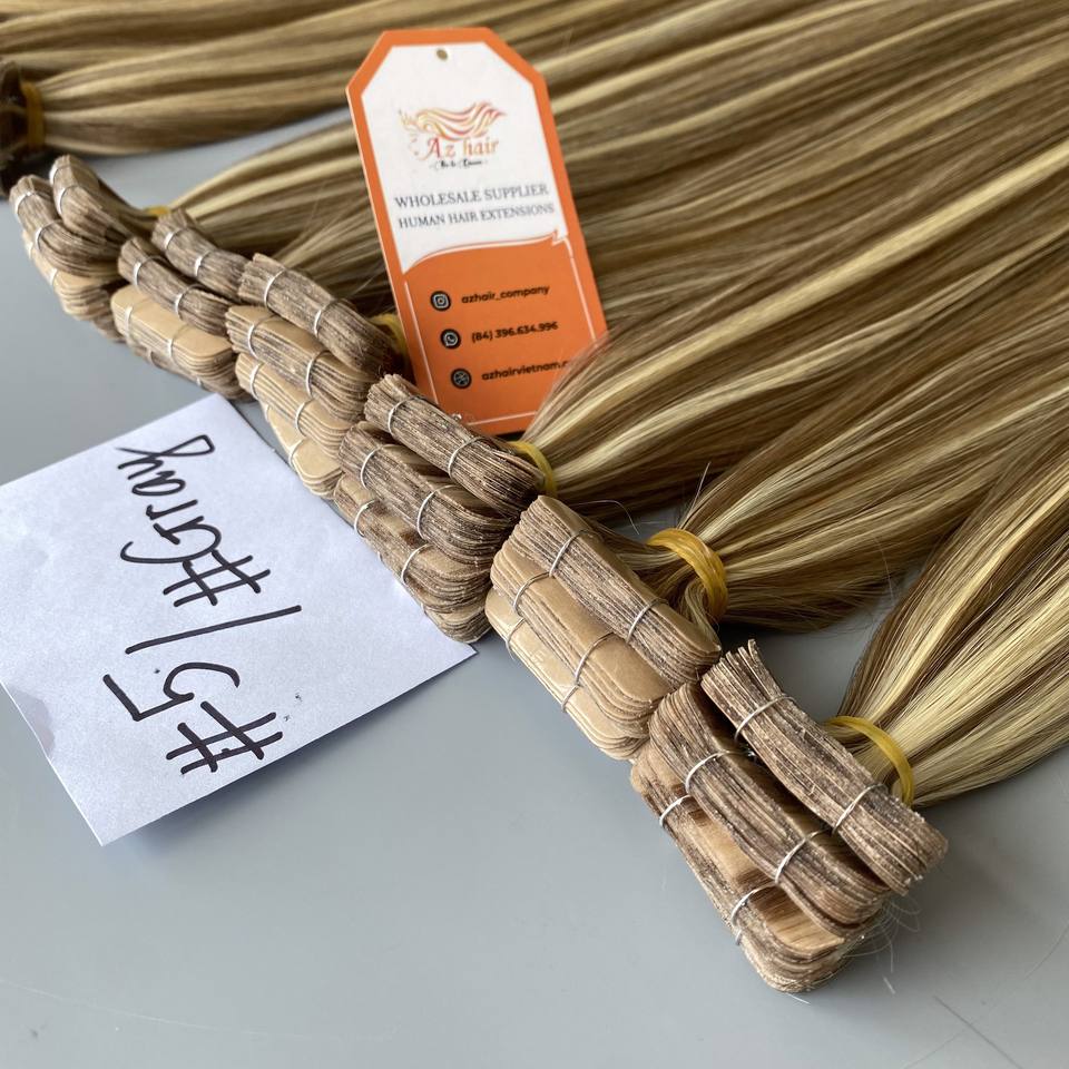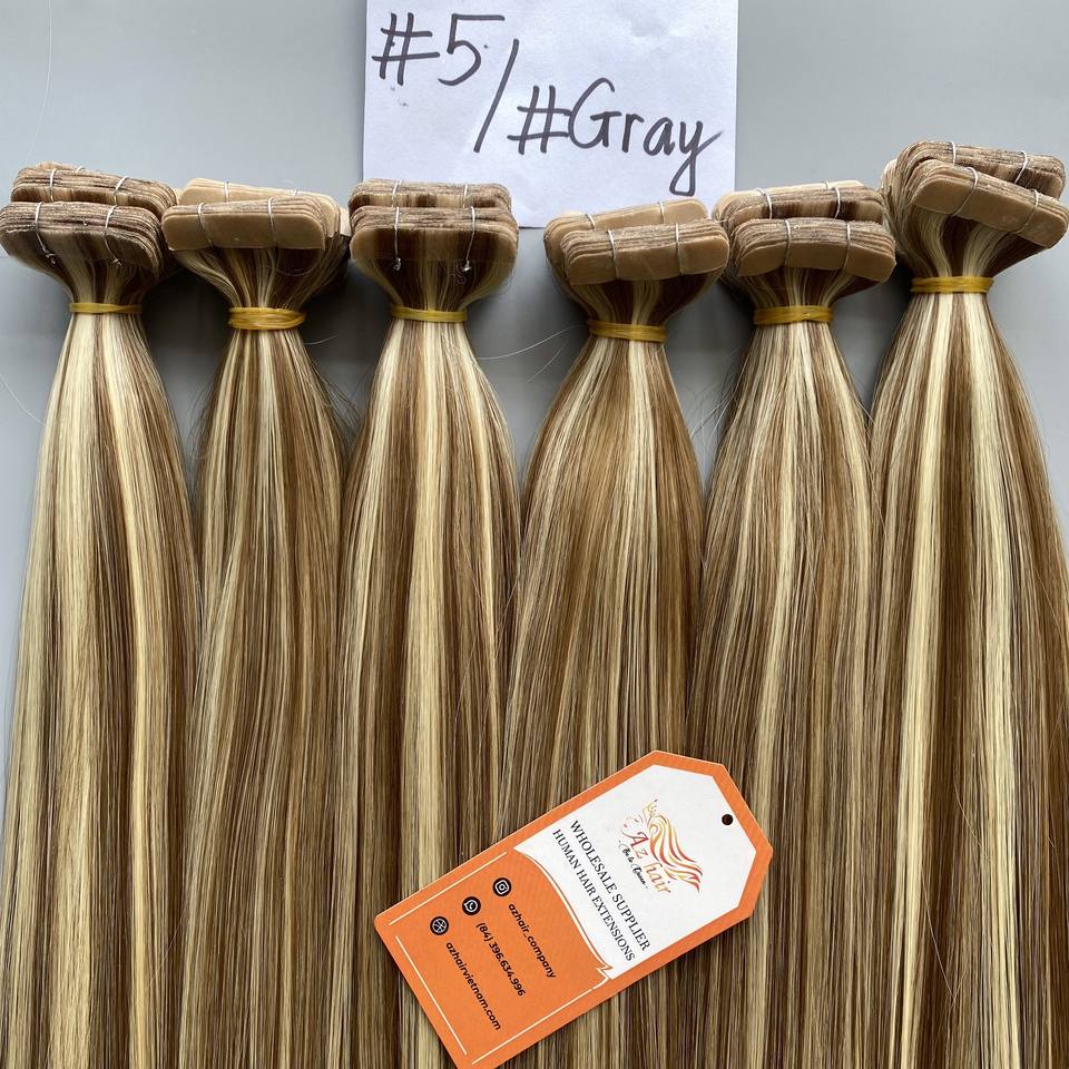 Venta al por mayor gran stock vietnamita cutícula alineada extensiones de cabello resaltar color cinta humana en el cabello