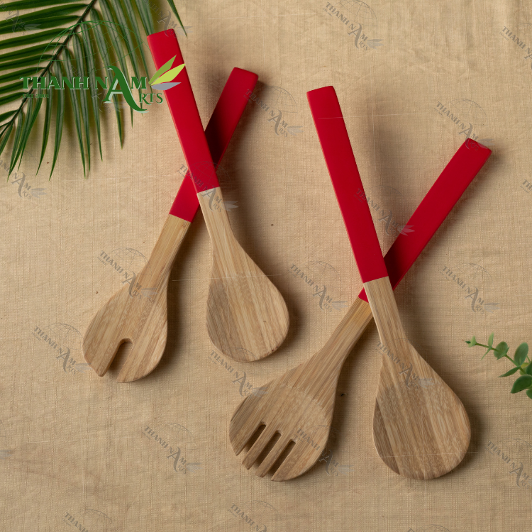 Juego de utensilios de cocina de bambú para cocina vietnamita, cuchara, espátula con mango importado de un proveedor de confianza