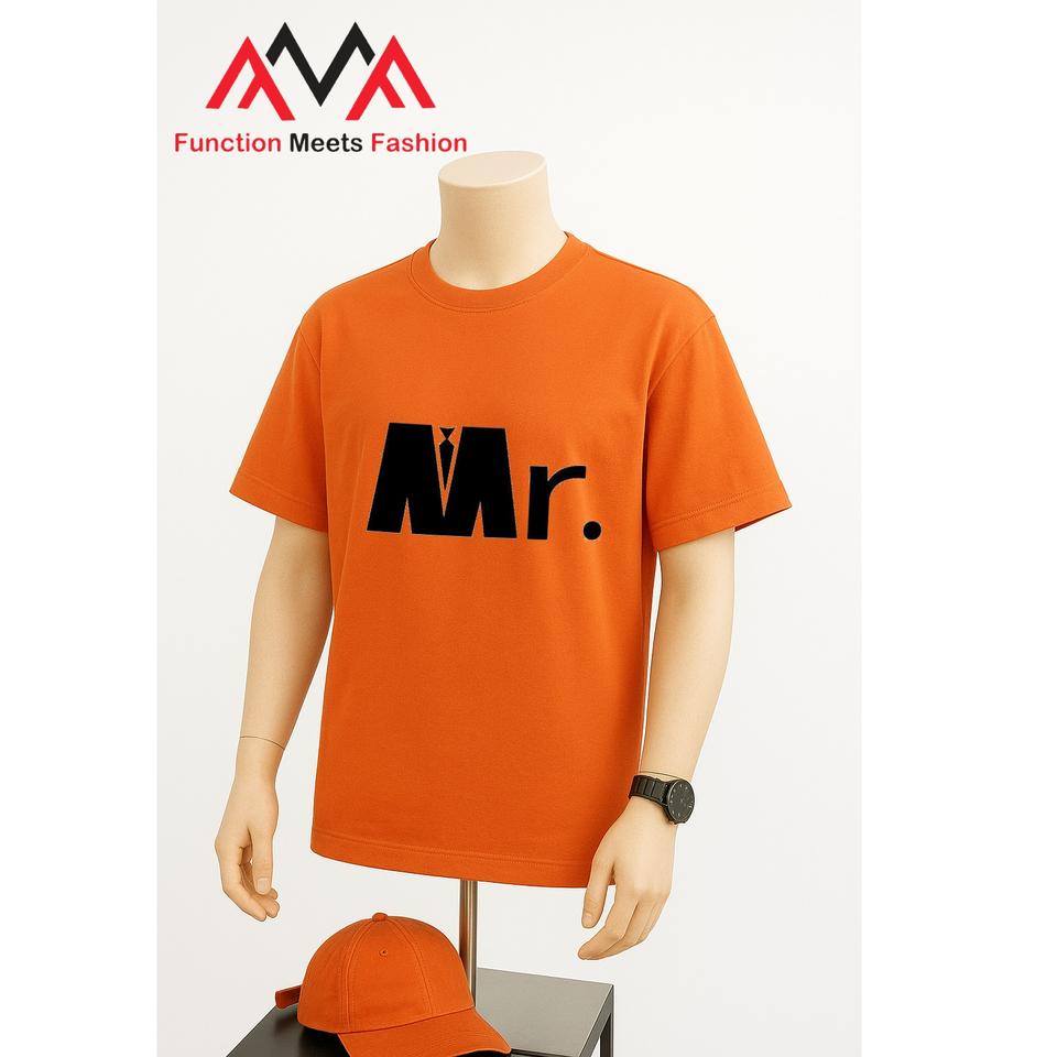 Camiseta Naranja Transpirable de Manga Corta con Estampado Gráfico, Corte Regular Informal, Mezcla de Algodón y Poliéster (TC) Estampada Vietnamita