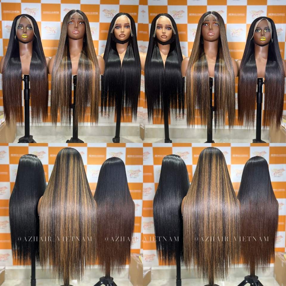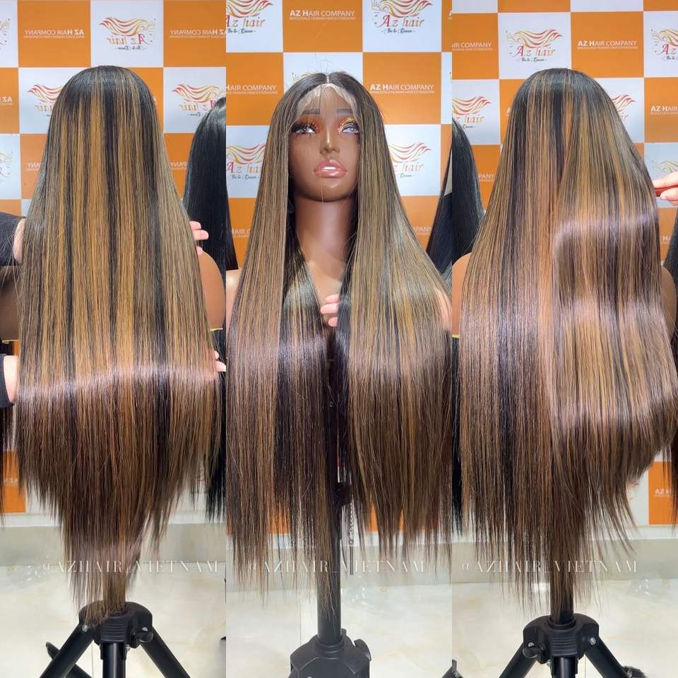 Extensiones de cabello humano Remy vietnamita Full HD para peluca Frontal de encaje con pelucas de alta calidad resaltadas rectas de hueso