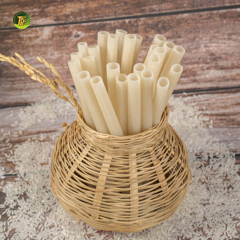 Pajitas de Arroz Vietnamitas Naturales Comestibles Desechables de Harina de Arroz Ecológicas para Fiestas