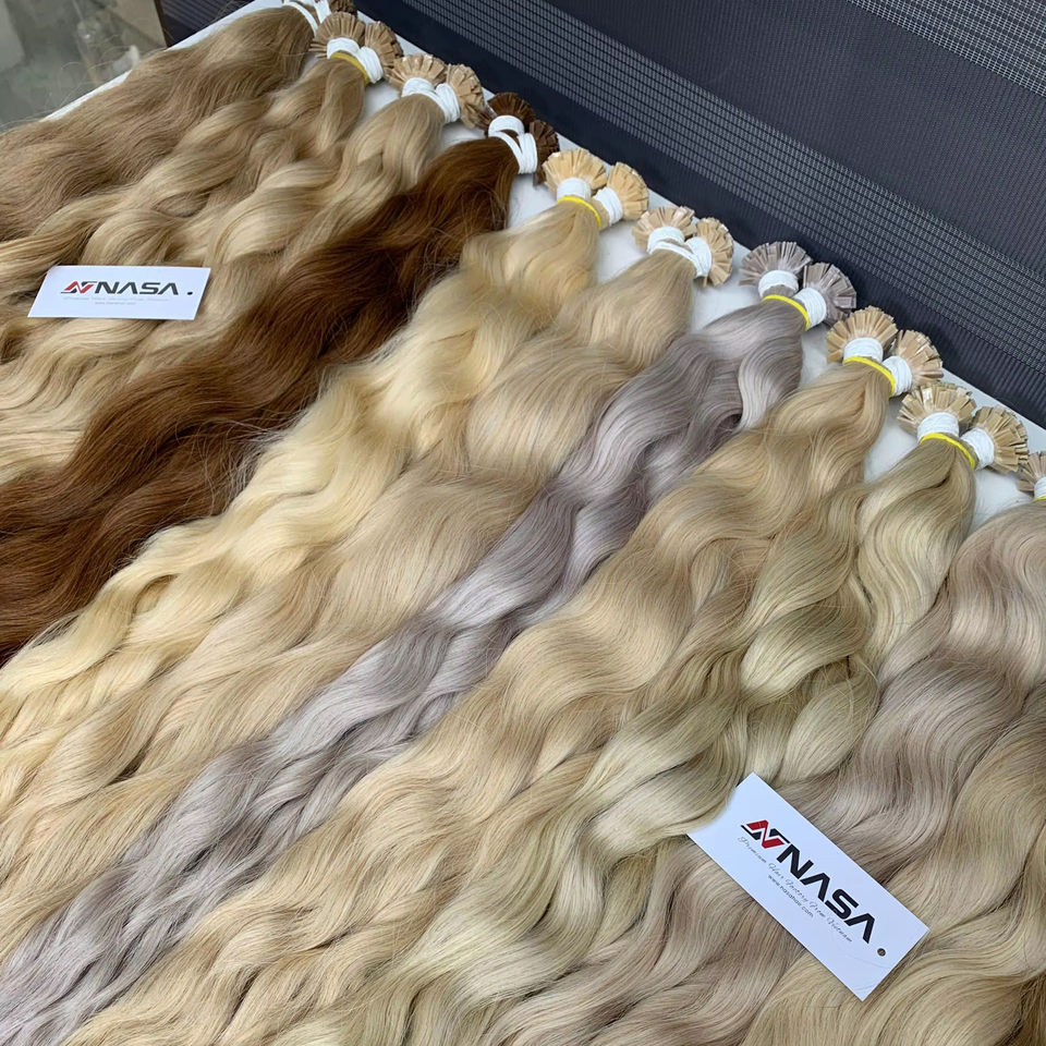 Extensiones de Cabello Virgen Vietnamita Remy con Punta Plana de Queratina, Teñidas, de Alta Calidad, a Granel, 100g, Precio de Fábrica NasaHair