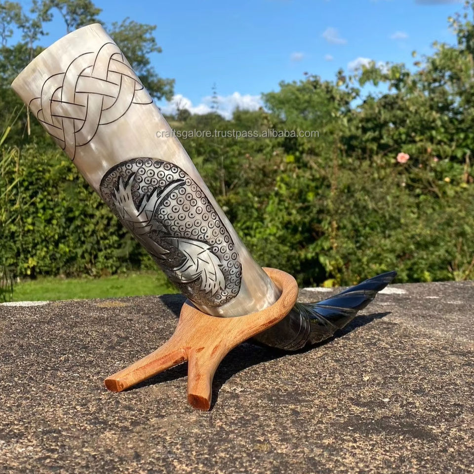 Cuerno Vikingo para Beber con Soporte de Metal, Cuerno Vikingo Genuino Hecho a Mano para Cerveza y Vino, Cuerno Original al Precio Más Bajo