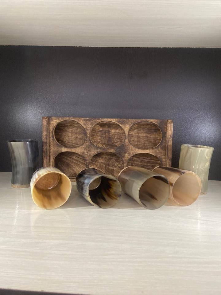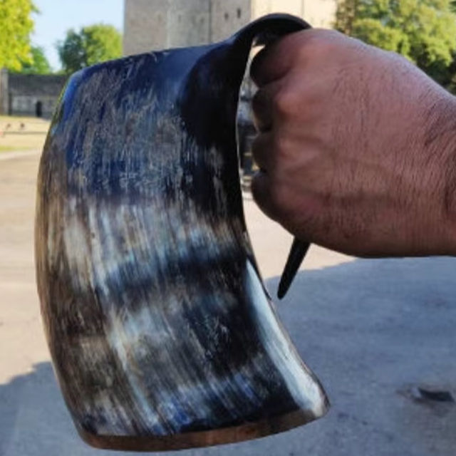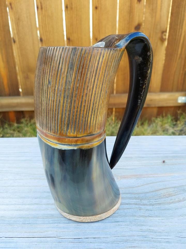 Cuerno Vikingo para Beber con Soporte Metálico Estilo Animal, Hecho a Mano, Ecológico, Acabado Pulido para Cerveza/Vino