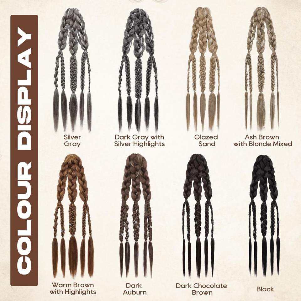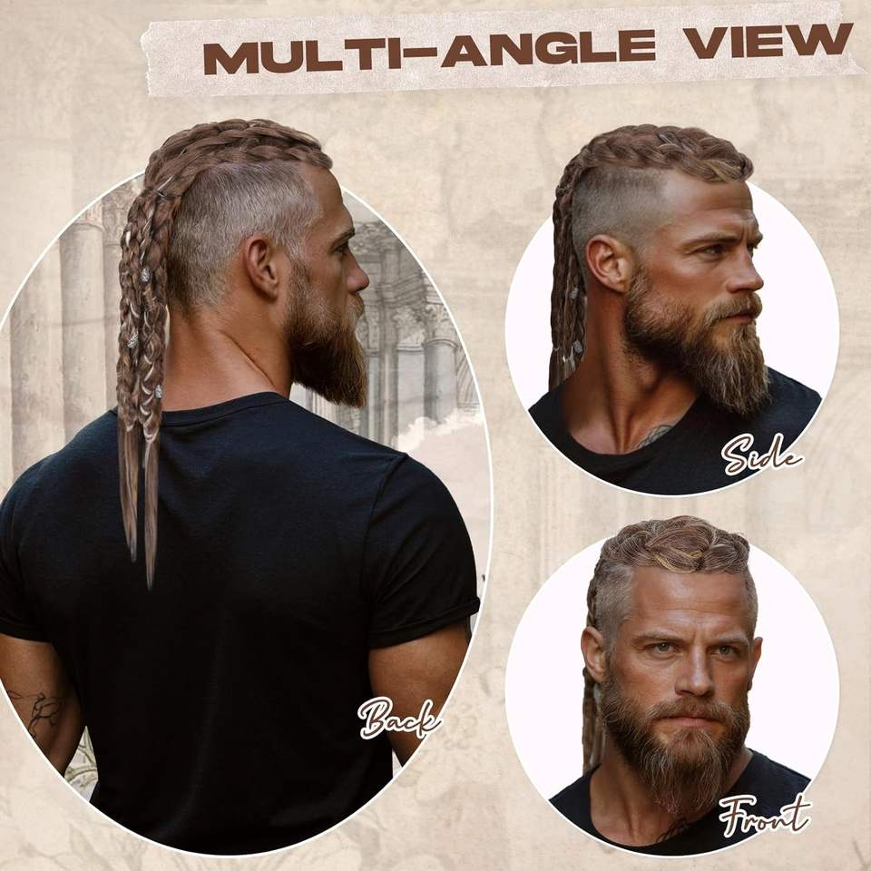 Extensiones de Cabello Vikingas para Hombre, 24 Pulgadas, Hechas a Mano, Cola de Caballo Trenzada con Clip, Accesorios de Guerrero Vikingo Renacentista para Halloween