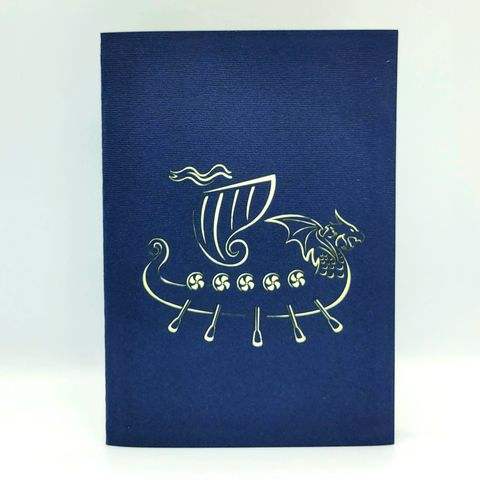 Tarjeta de Invitación de Boda con Diseño de Barco Vikingo, Diseño Cruzado, Hecho a Mano, Papel Cortado Personalizado, Marrón, Vietnamita, Troquelado, Venta al por Mayor