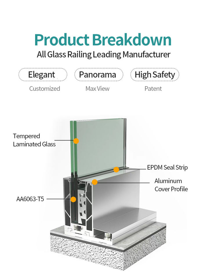 Nombre del producto:Sistema de barandilla de vidrio A50