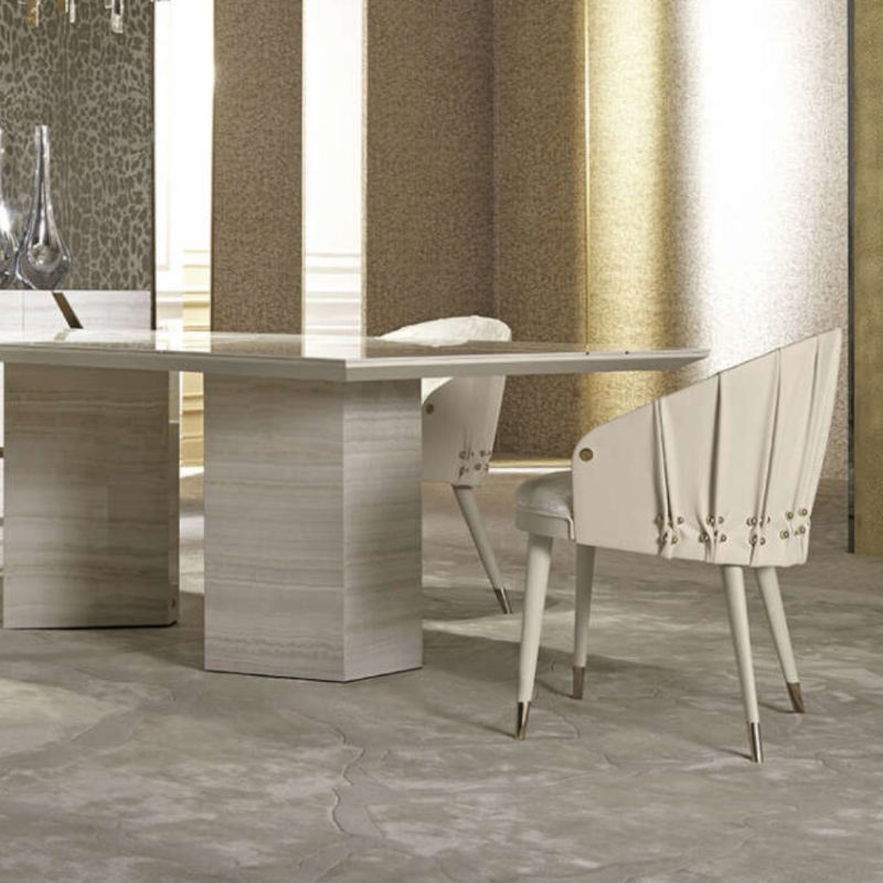 Sillas de Comedor de Diseño Italiano de Alta Gama para Villa, Sillas de Comedor Modernas de Lujo Tapizadas en Cuero con Brazos