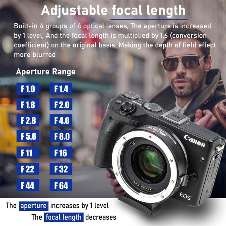 Adaptador de Lente Viltrox EF-EOS M2 AF con Enfoque Automático EXIF 0.71X Reductor de Velocidad Turbo para Lentes Canon EF a Cámaras EOS M5 M6 M50
