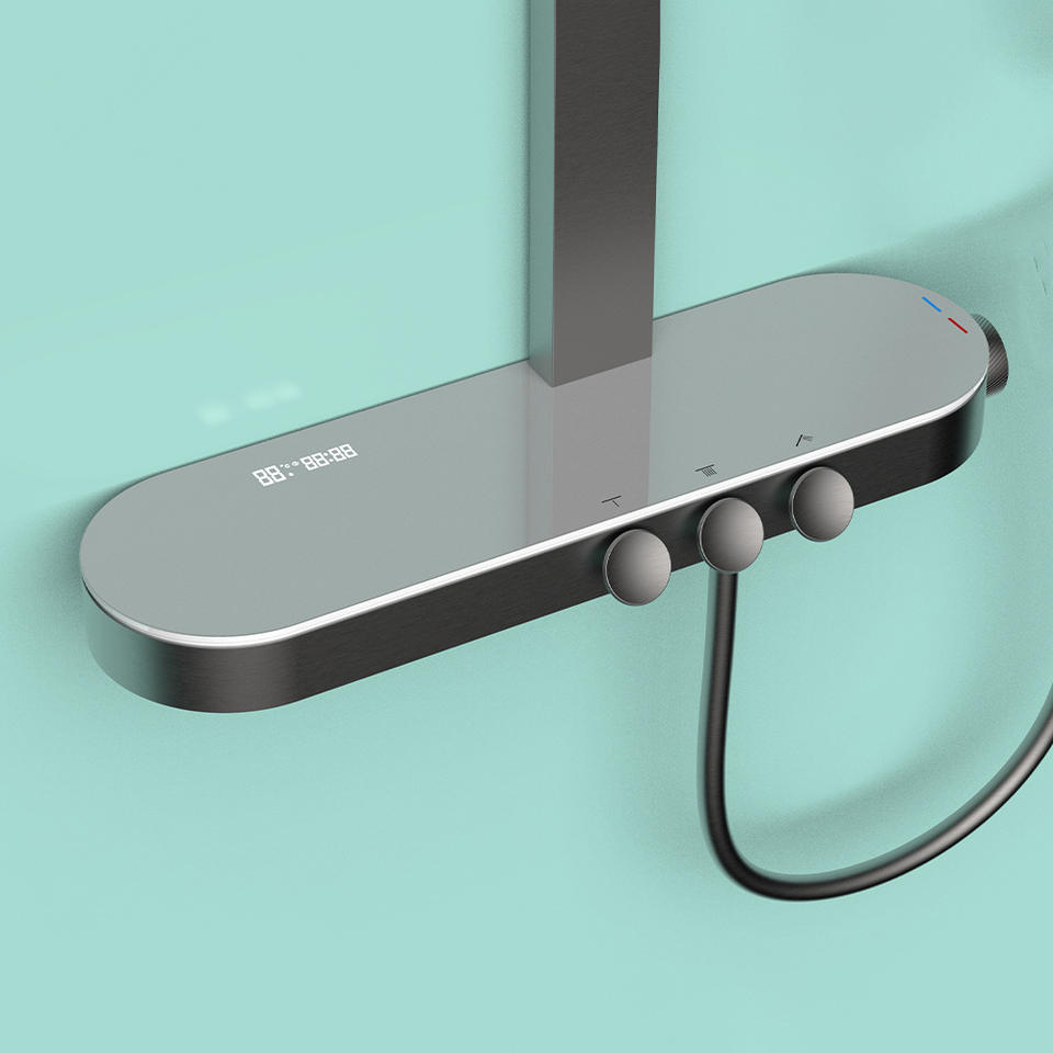 Ducha de Baño de Tres Etapas con Agua Caliente/Fría, Varilla Cuadrada de Instalación, Acabado Cepillado en Color Gris Metálico, Totalmente en Cobre, Directo de Fábrica Vimijia