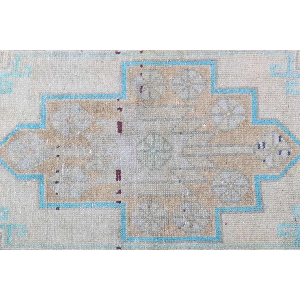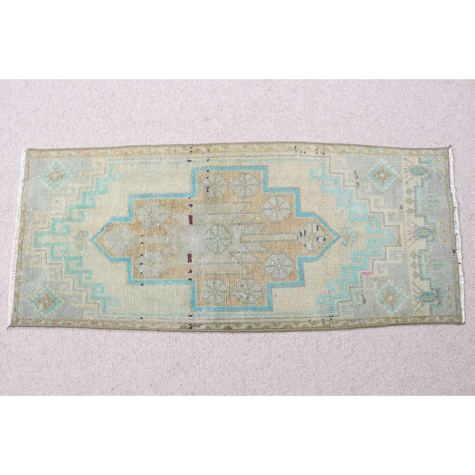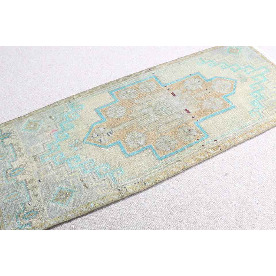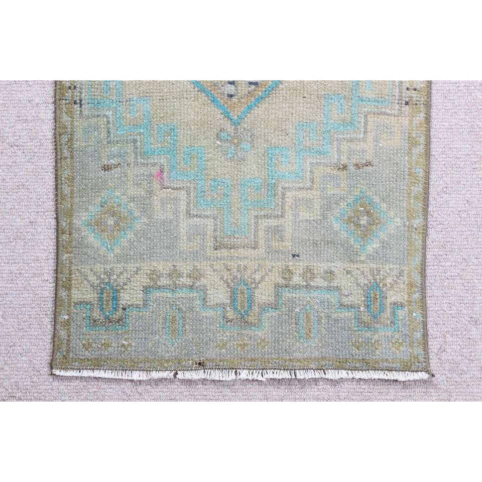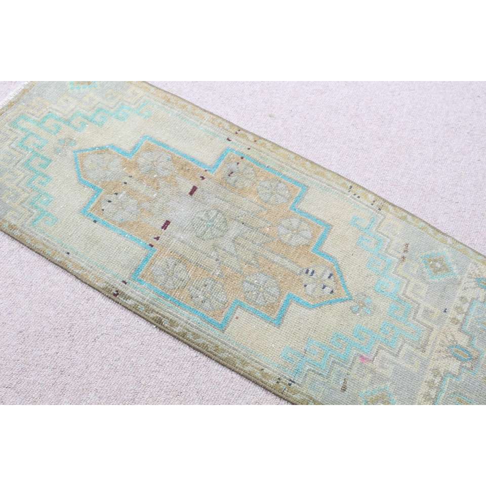 Alfombra Vintage de 1.4x3.4 pies, Alfombra Turca Pequeña, Alfombra Oriental Azul