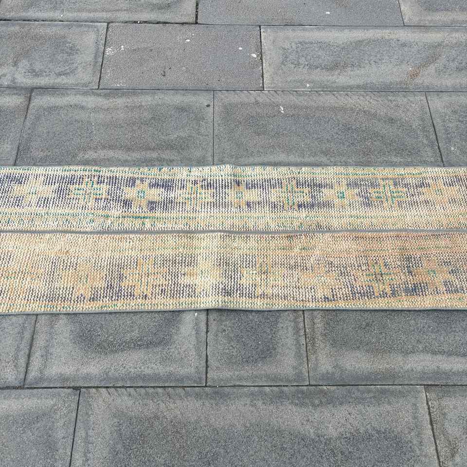 Alfombra Vintage de 1.4x5.2 pies, Alfombra Turca, Alfombra con Bordes Azules y Marrones