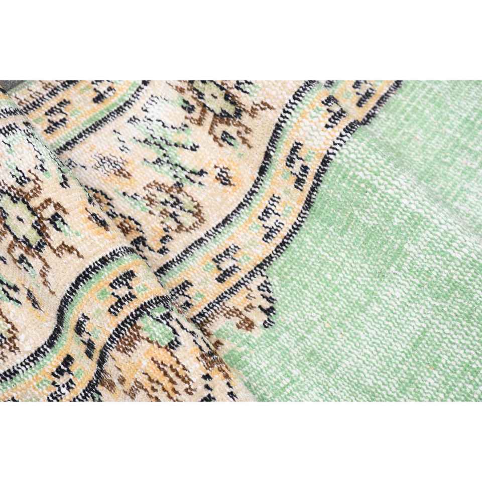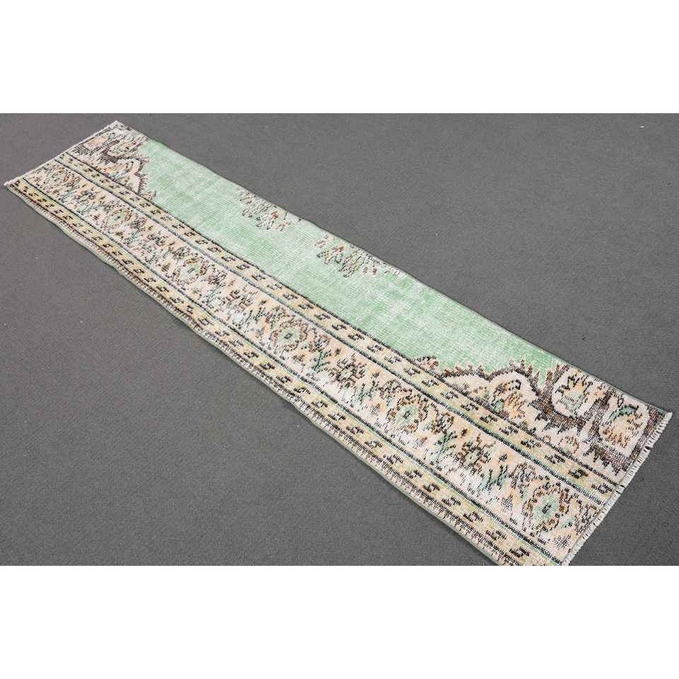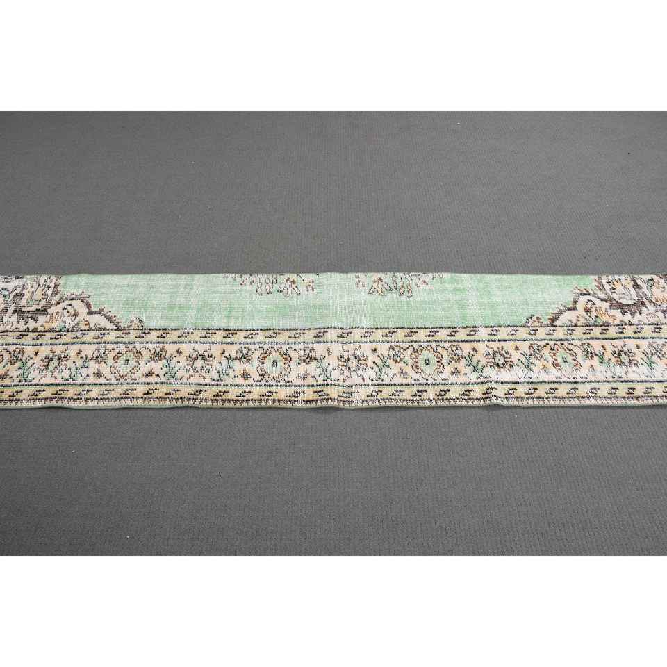 Alfombra Vintage de 1.6x7.2 pies, Alfombra Turca, Alfombra de Lana Verde Sólida