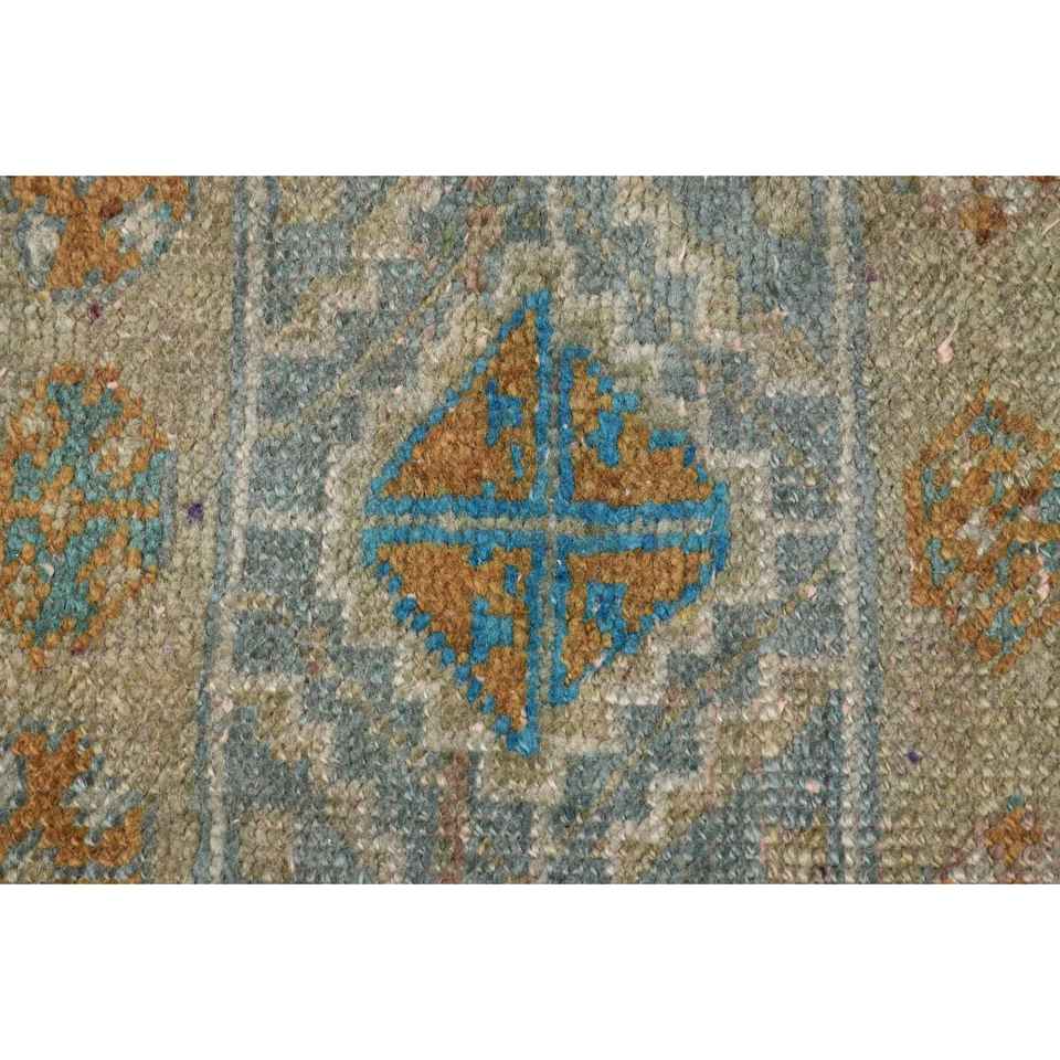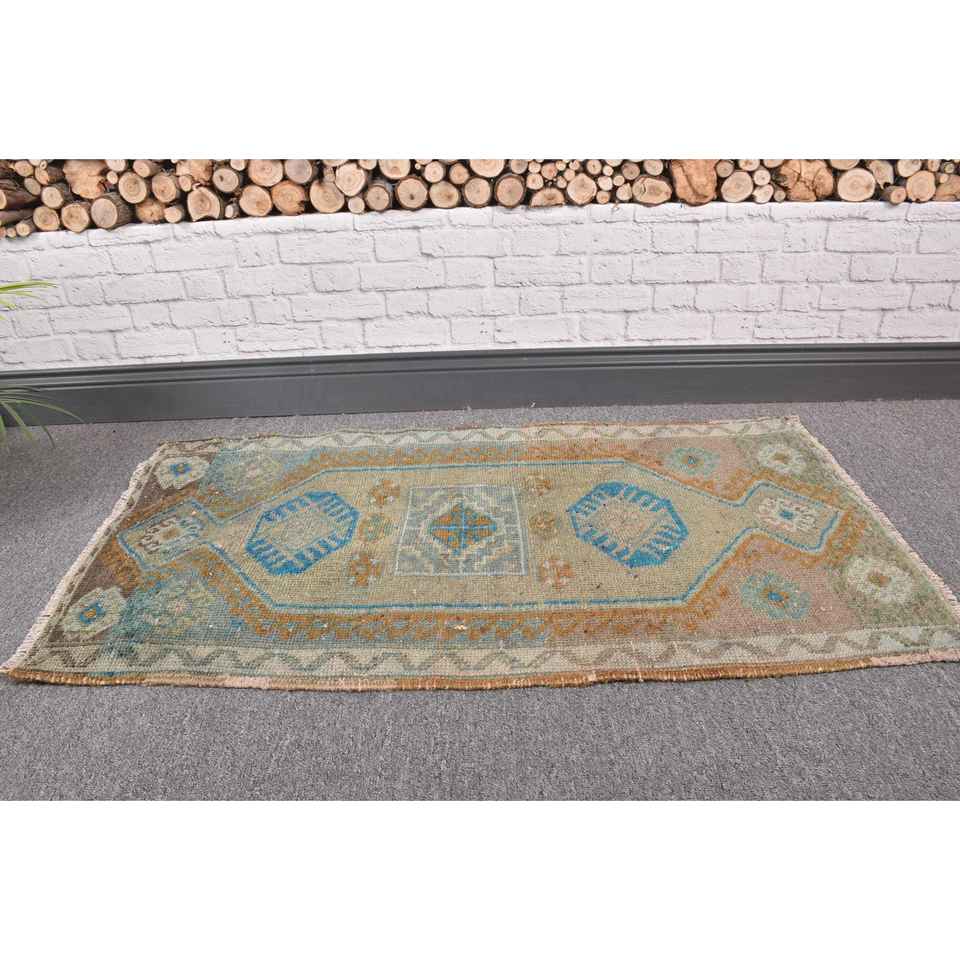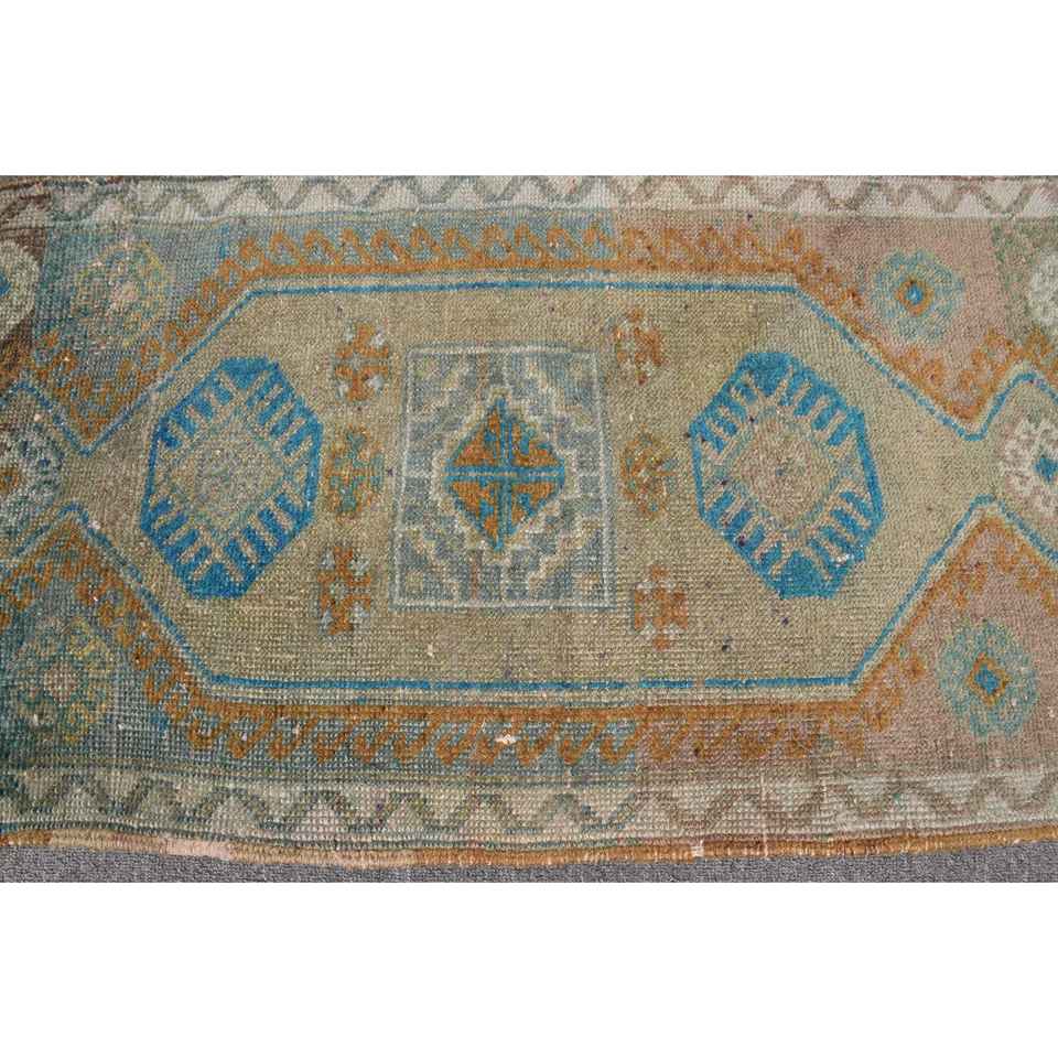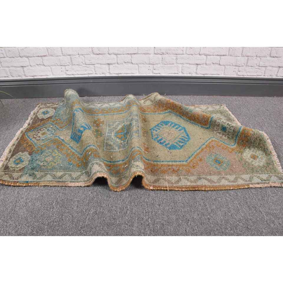 Alfombra Vintage de 1.7x3.2 pies, Alfombra Turca, Alfombra Oriental Azul de Lana