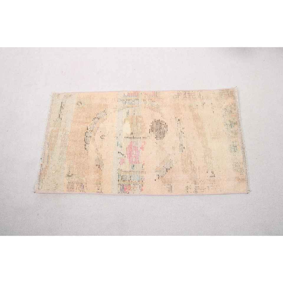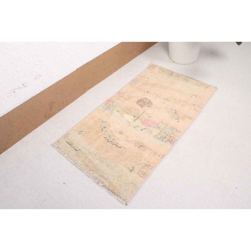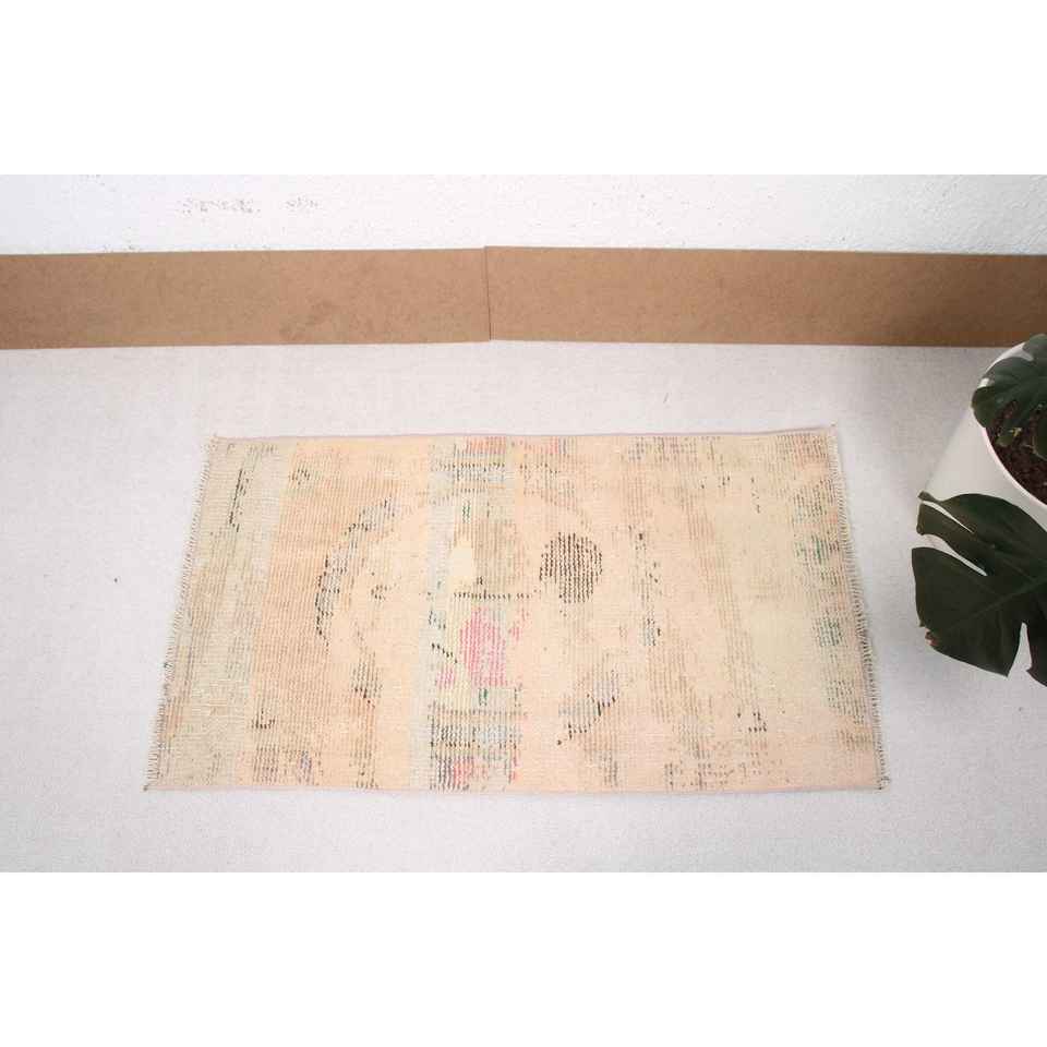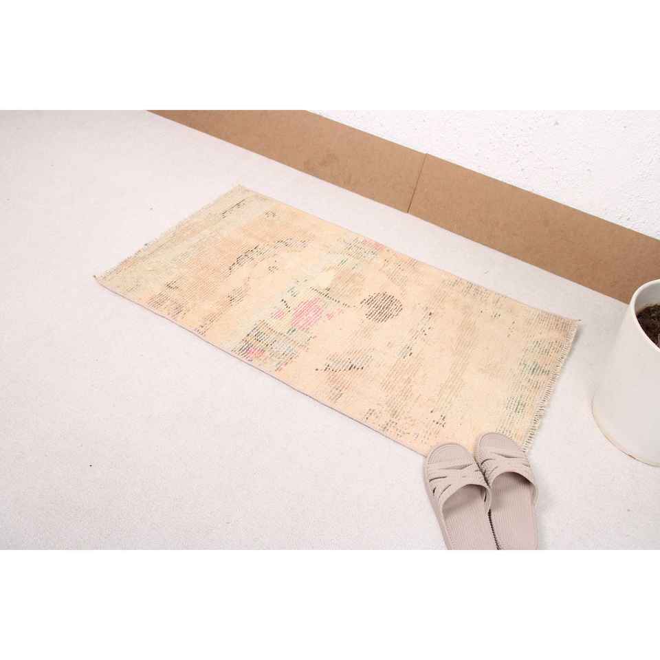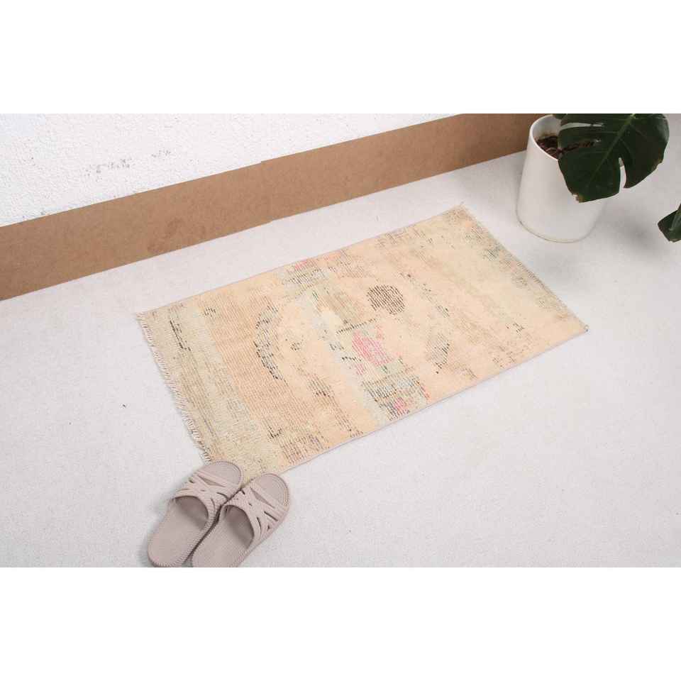 Alfombra Vintage de 1.8x3.2 pies, Alfombra Turca, Alfombra Blanca con Diseño Floral de Lana