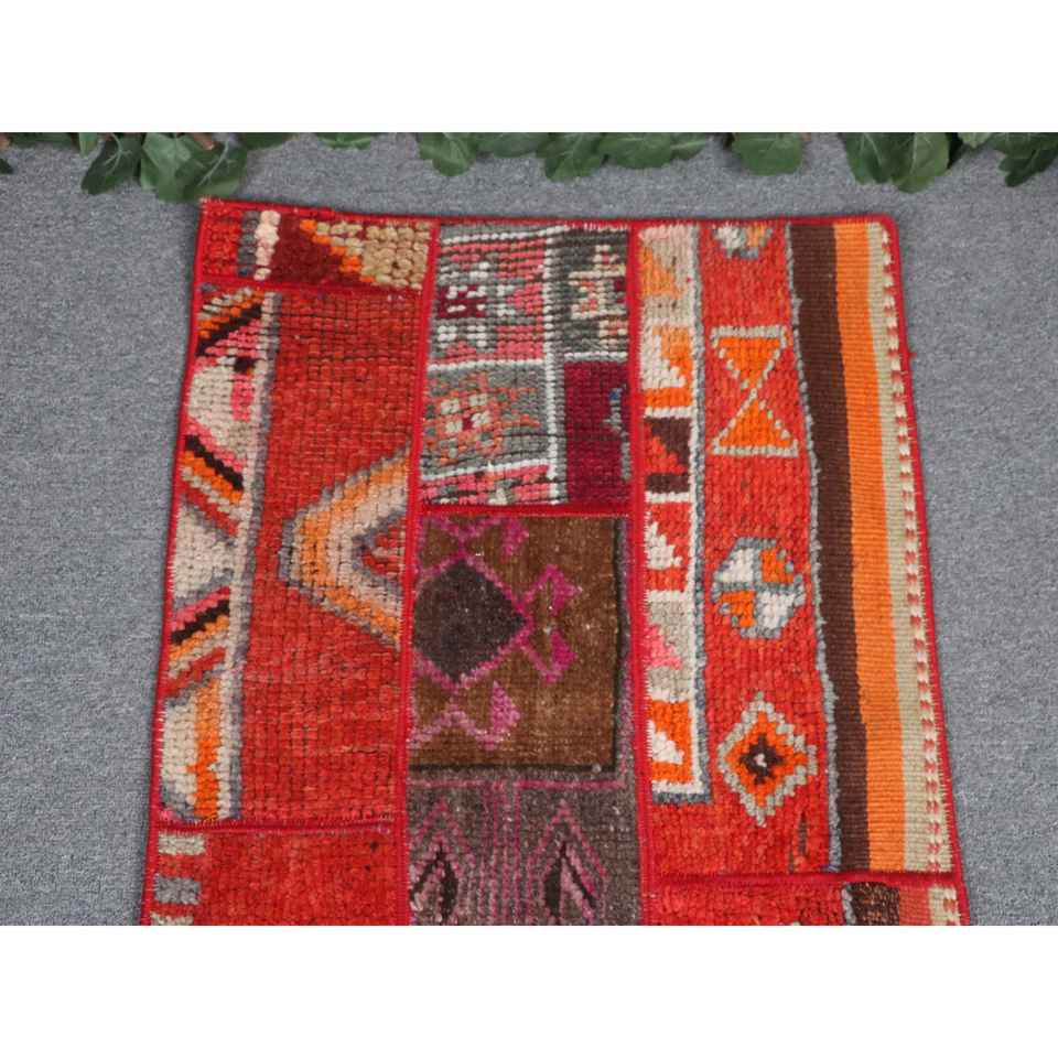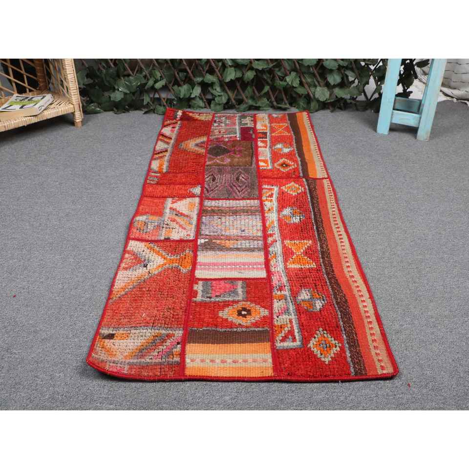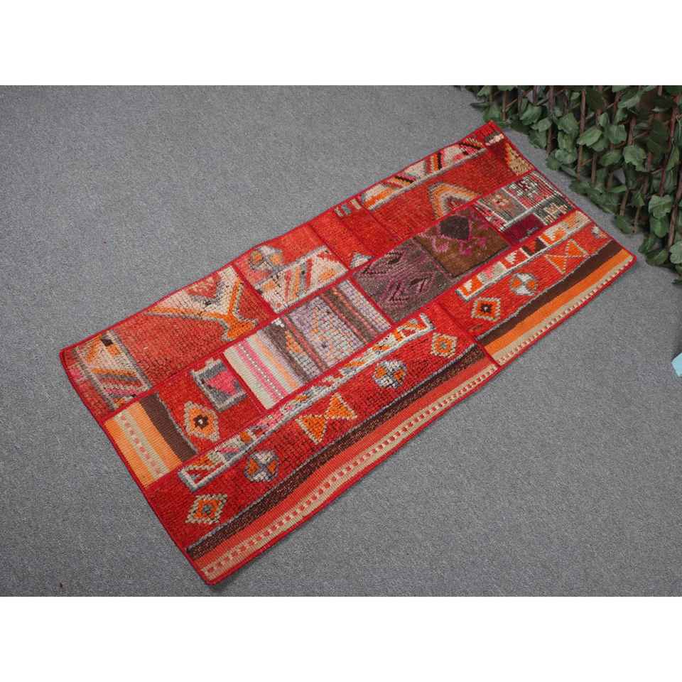Alfombra Vintage de 1.8x4.2 pies, Alfombra Turca, Alfombra Roja con Diseño Floral de Lana