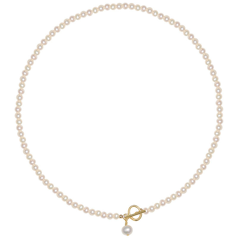 Collar de Clavícula con Hebilla OT Chapada en Oro de 14K Vintage, Perla de Agua Dulce Francesa de Cuello de Cisne de 4-5 mm, Joyería de Moda para Mujer