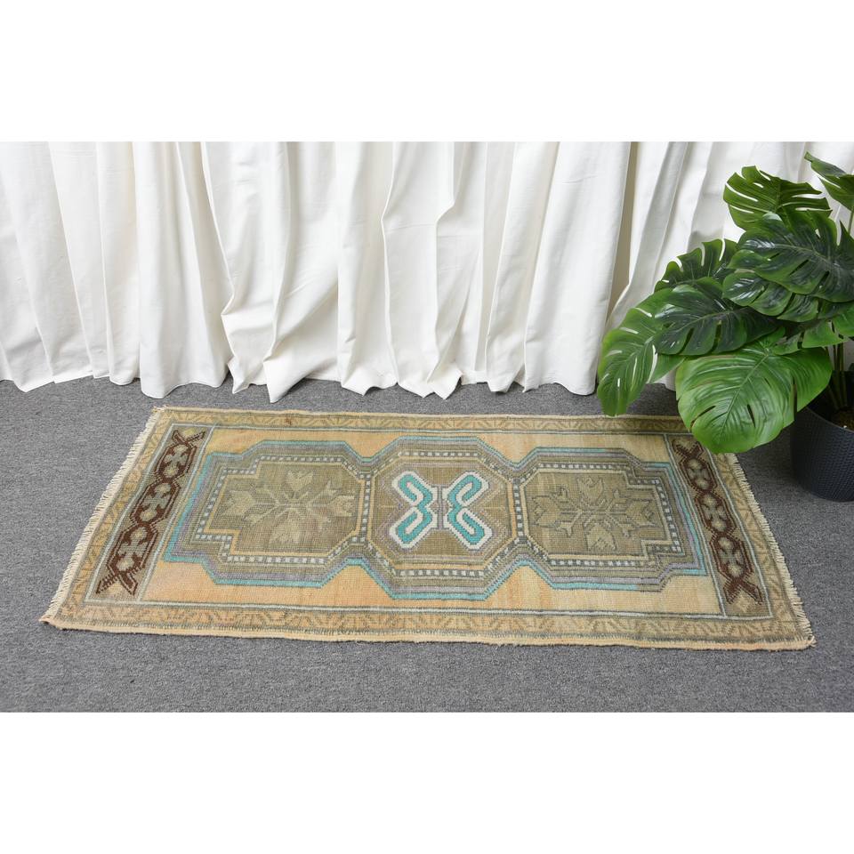 Alfombra de lana turca Vintage de 16x33 pies, estilo clásico de retales en tejido plano con respaldo de látex verde beige para decoraciones de sala de estar para adolescentes