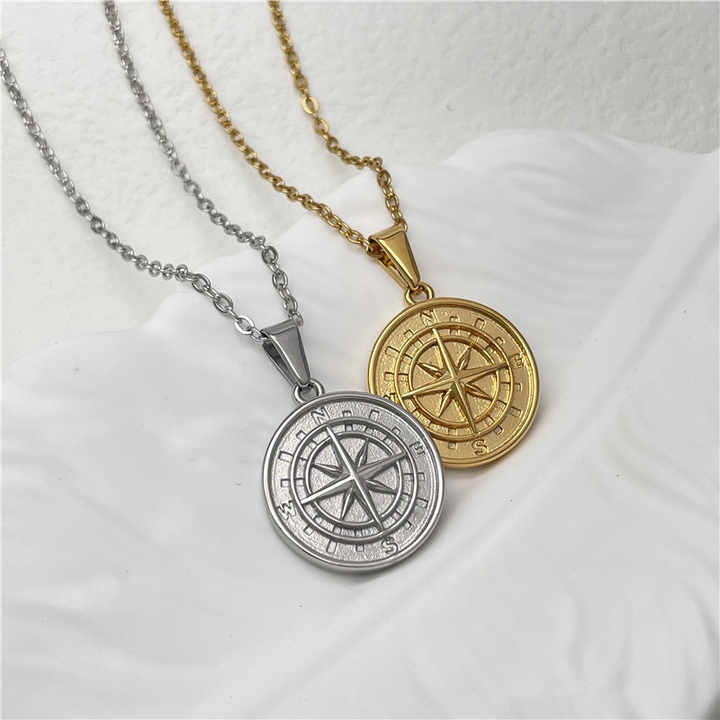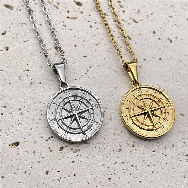 Collar de brújula de acero inoxidable para hombre, colgante de Estrella del Norte, oro de 18k, Vintage