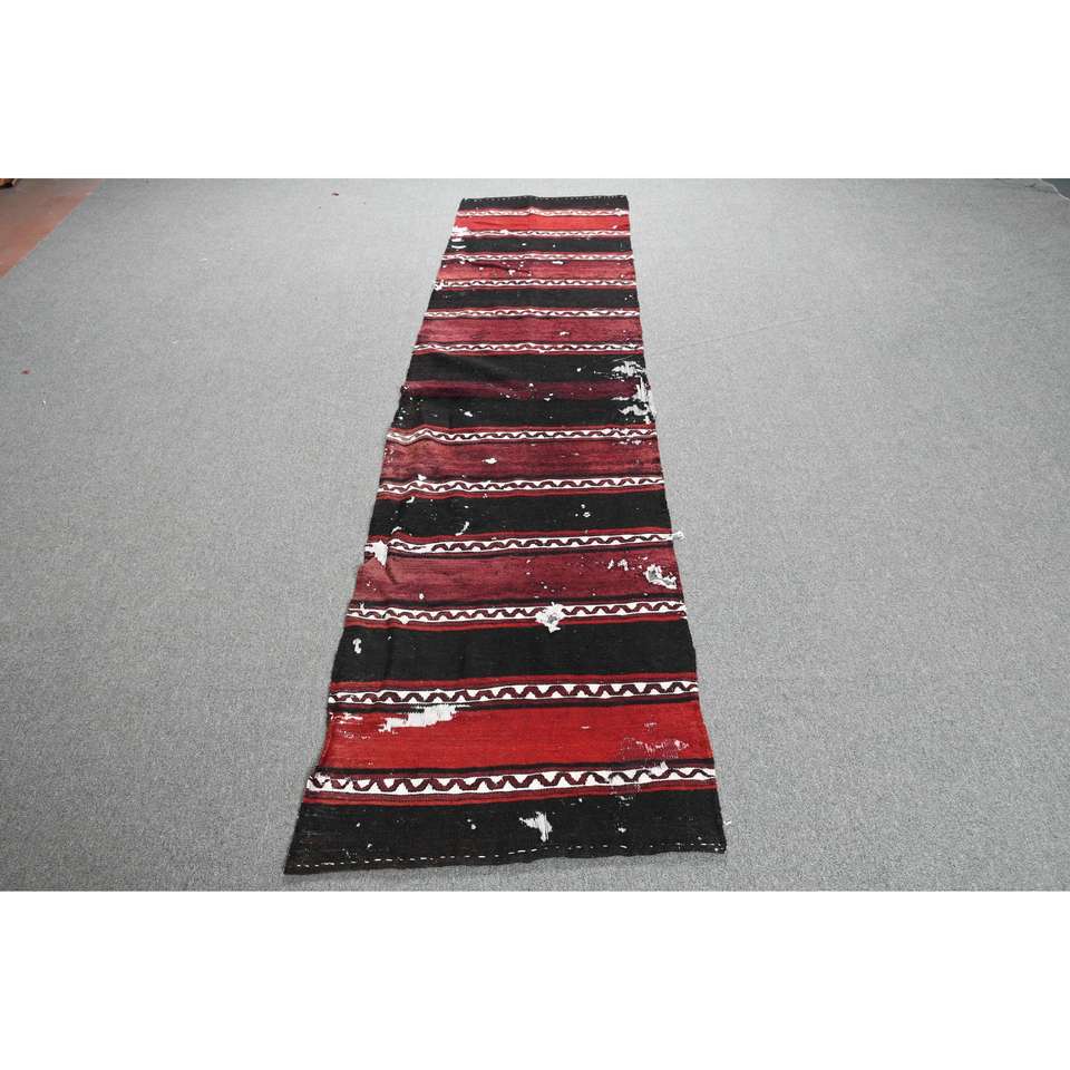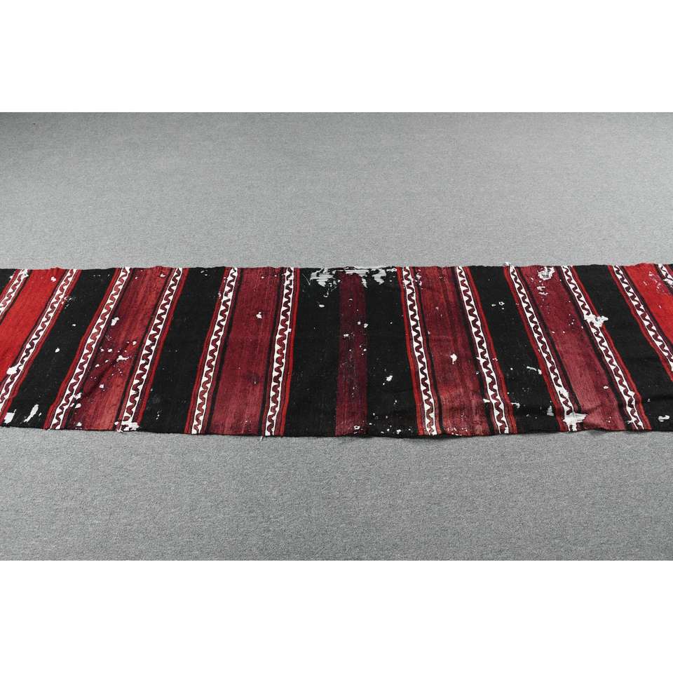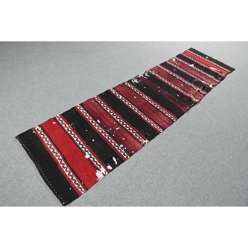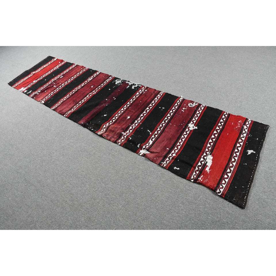 Alfombra Vintage de 2.1x8.5 pies, Alfombra Turca Kilim, Alfombra de Lana Roja Ombré