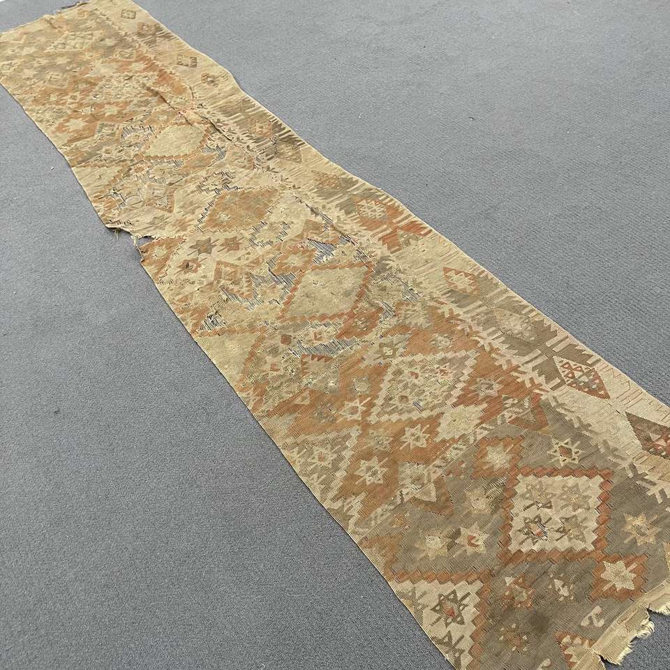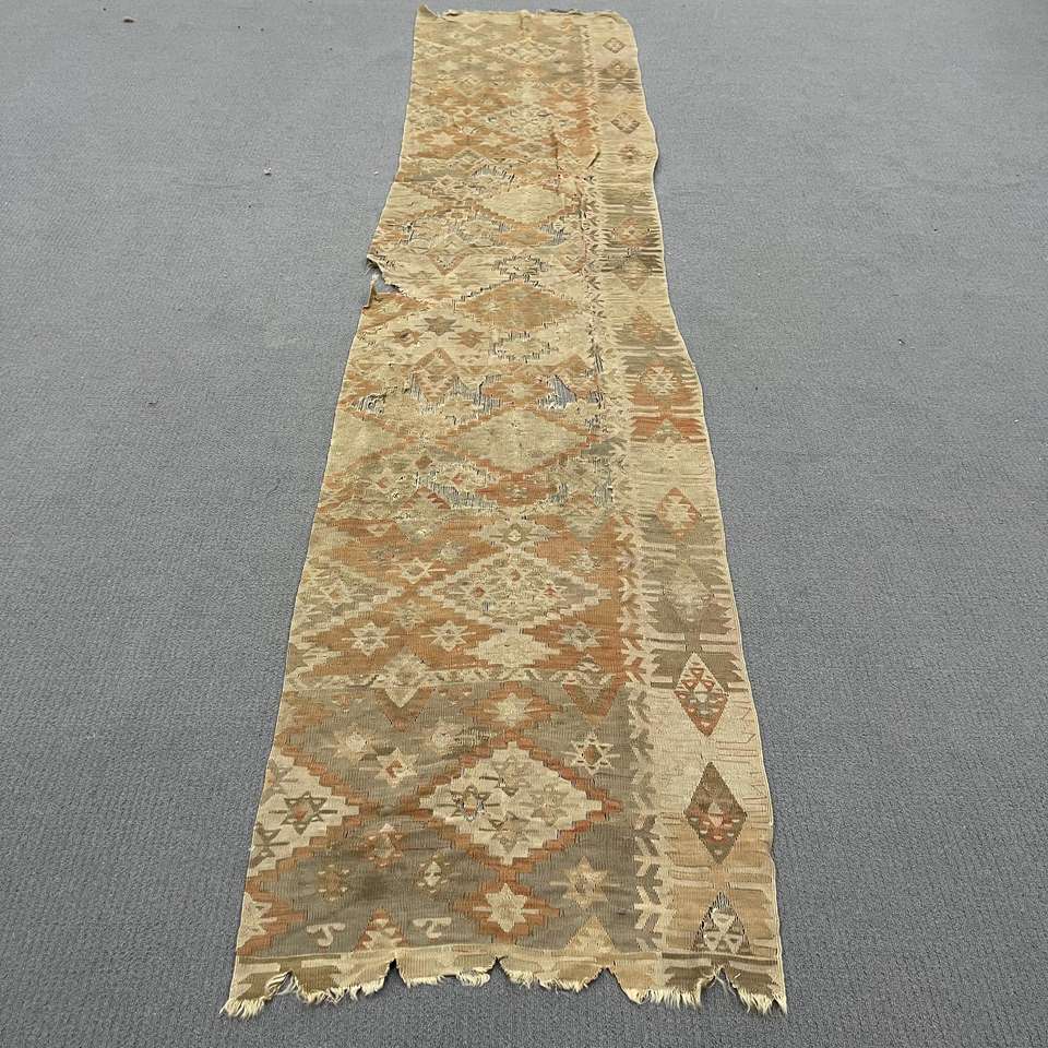 Alfombra Vintage de 2.3x10.8 pies, Alfombra Turca, Alfombra Sólida Marrón Grisácea