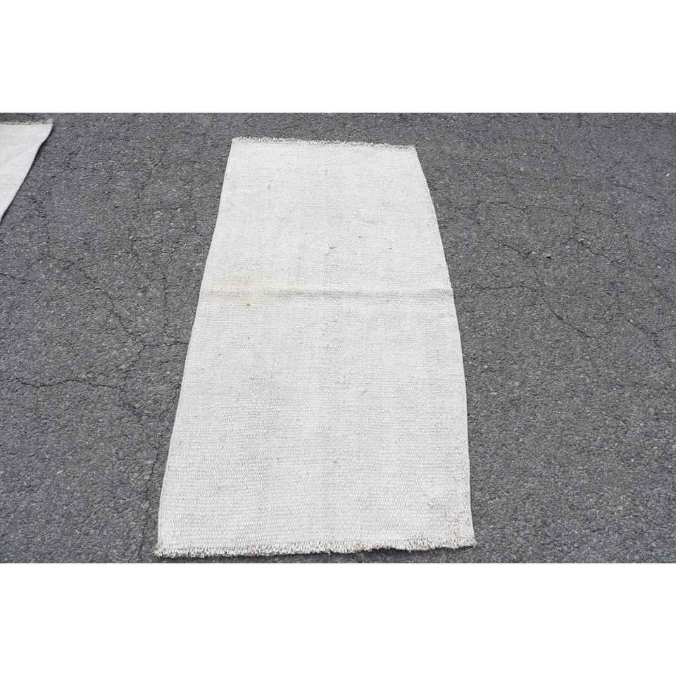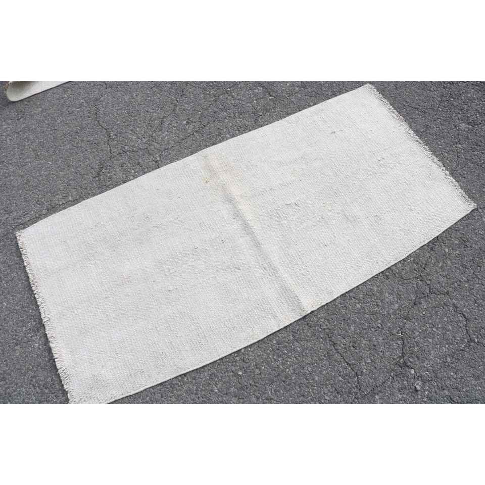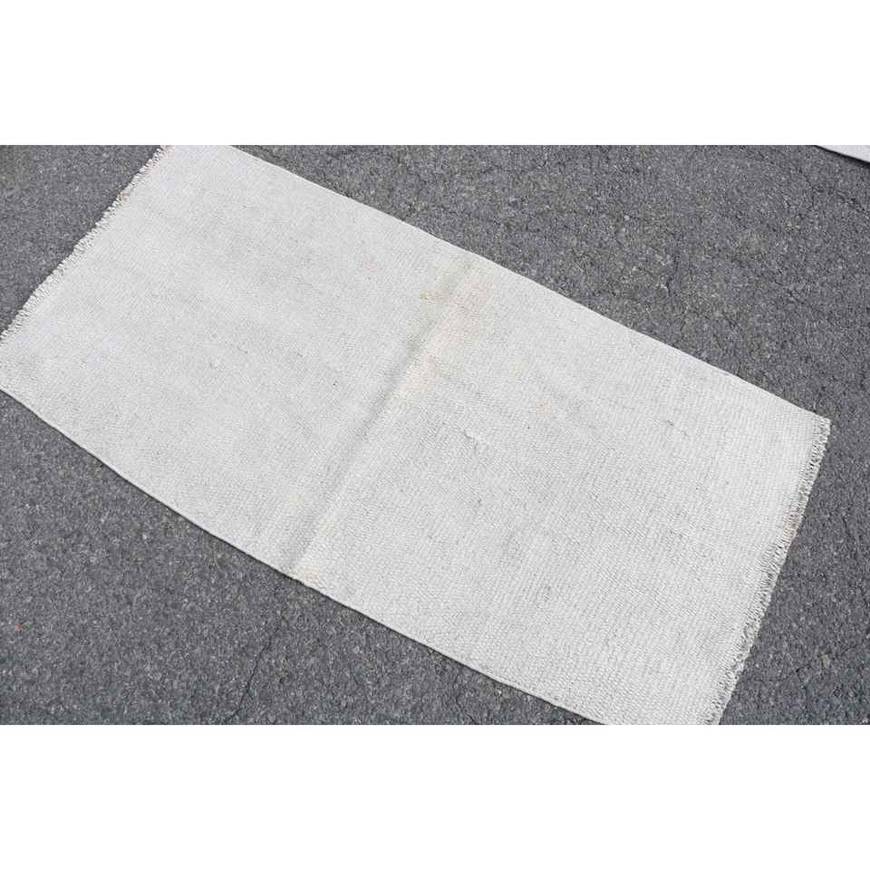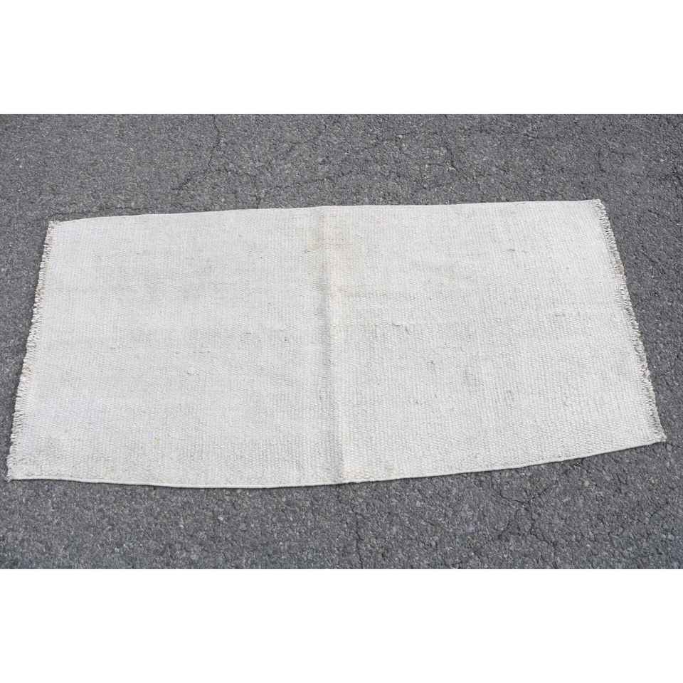 Alfombra Vintage de 2.4x4.9 pies, Alfombra Turca, Alfombra Blanca de Lana del Suroeste