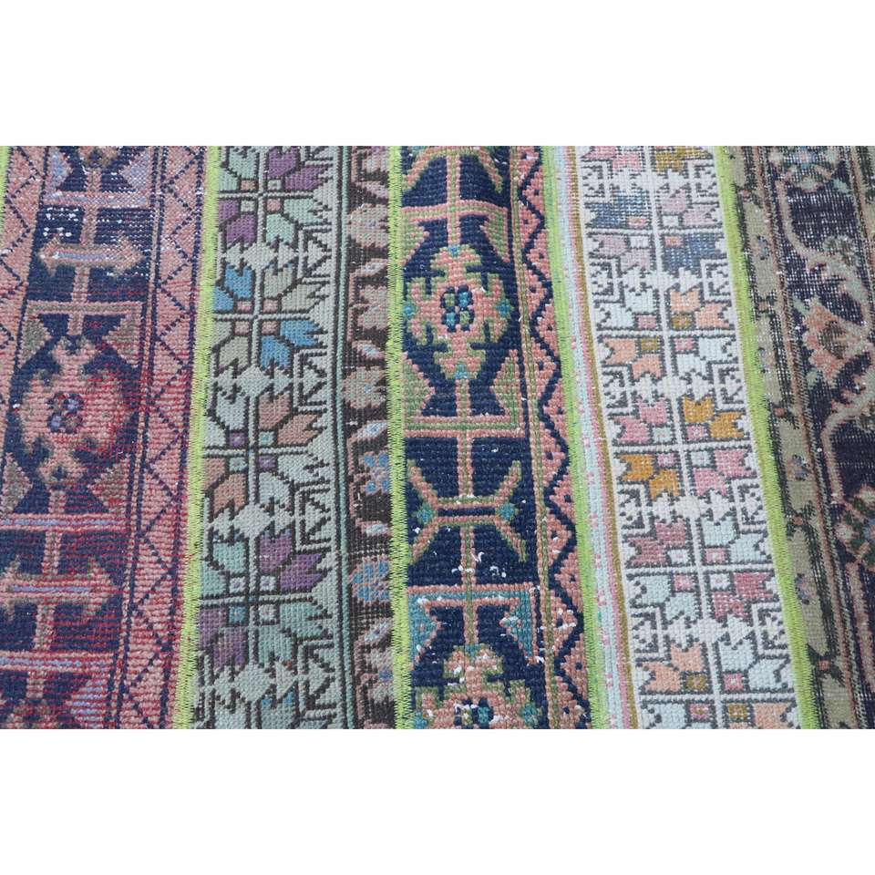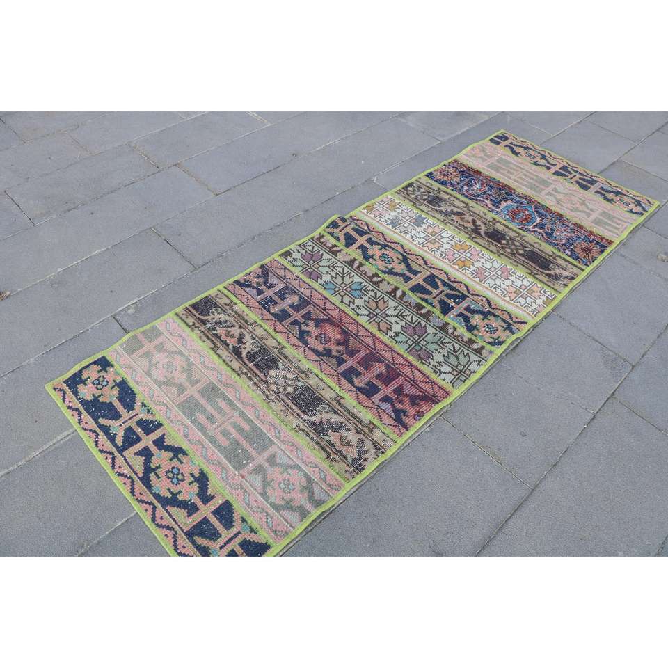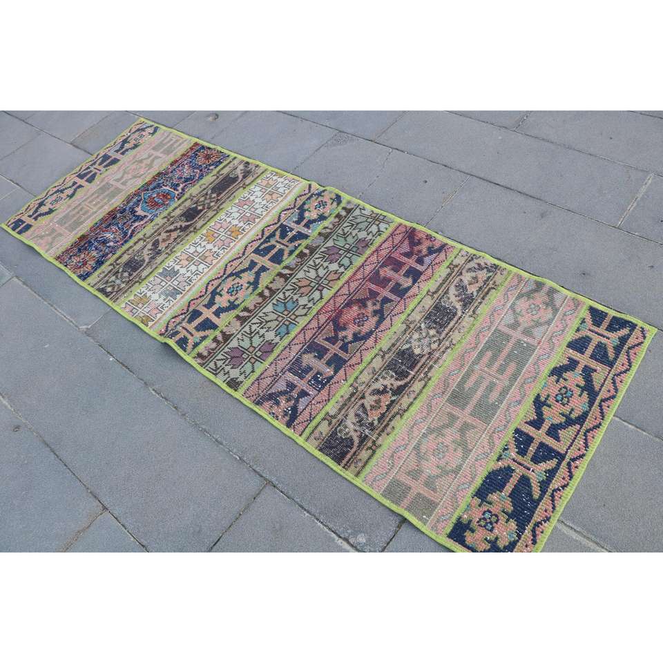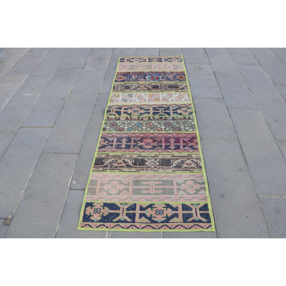 Alfombra Vintage de 2.6x7.3 pies, Alfombra Turca, Alfombra de Lana Azul Ombré