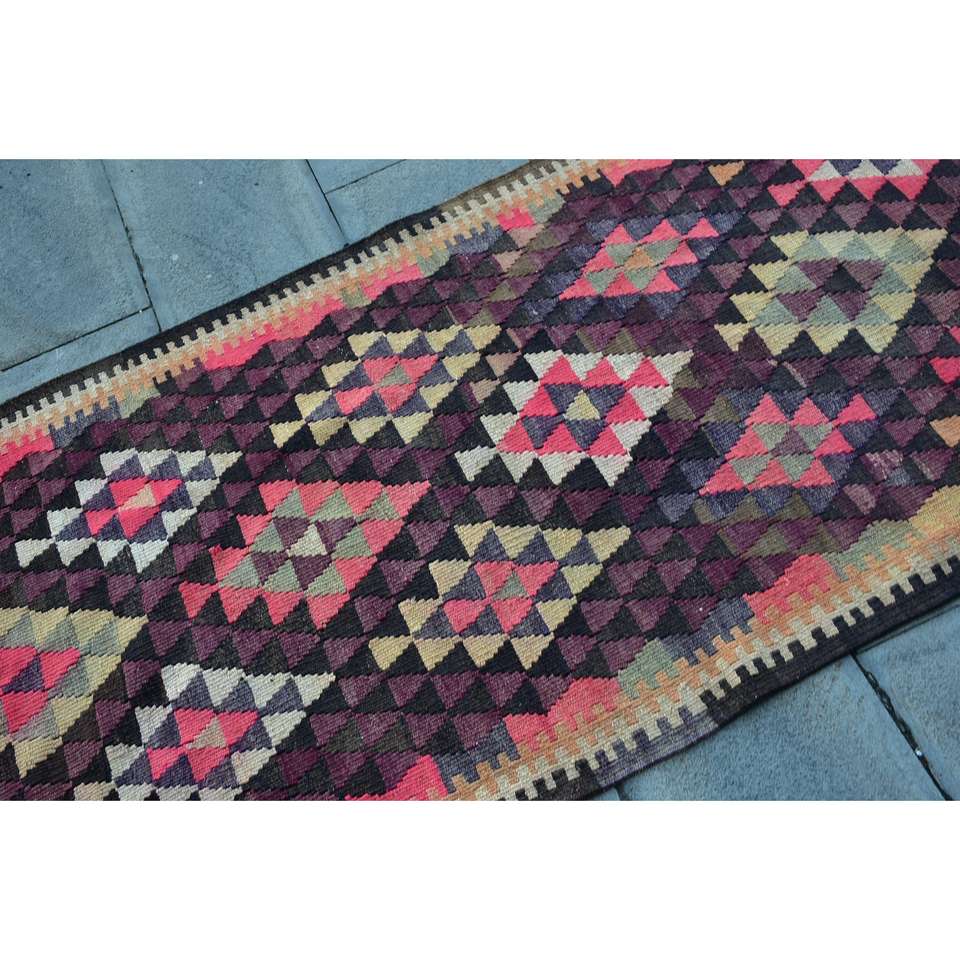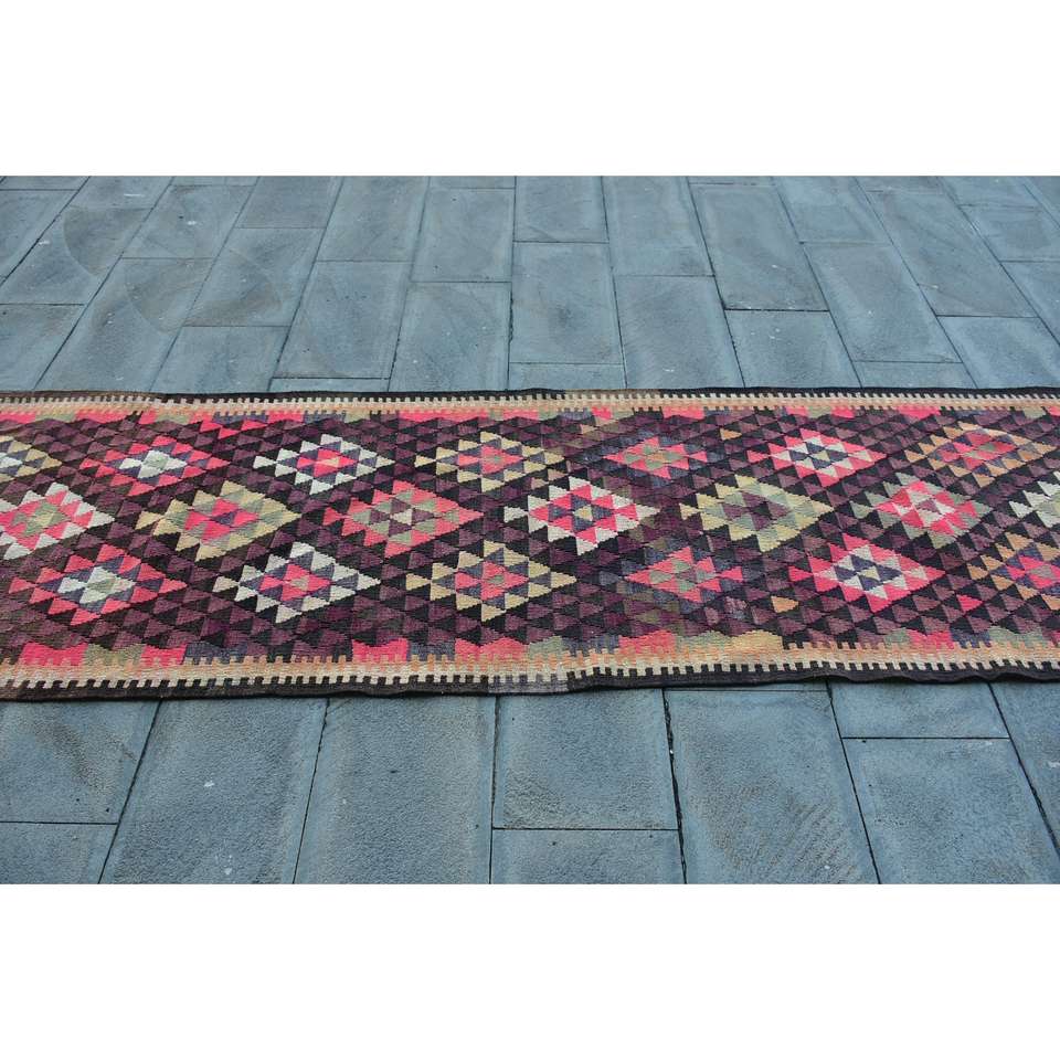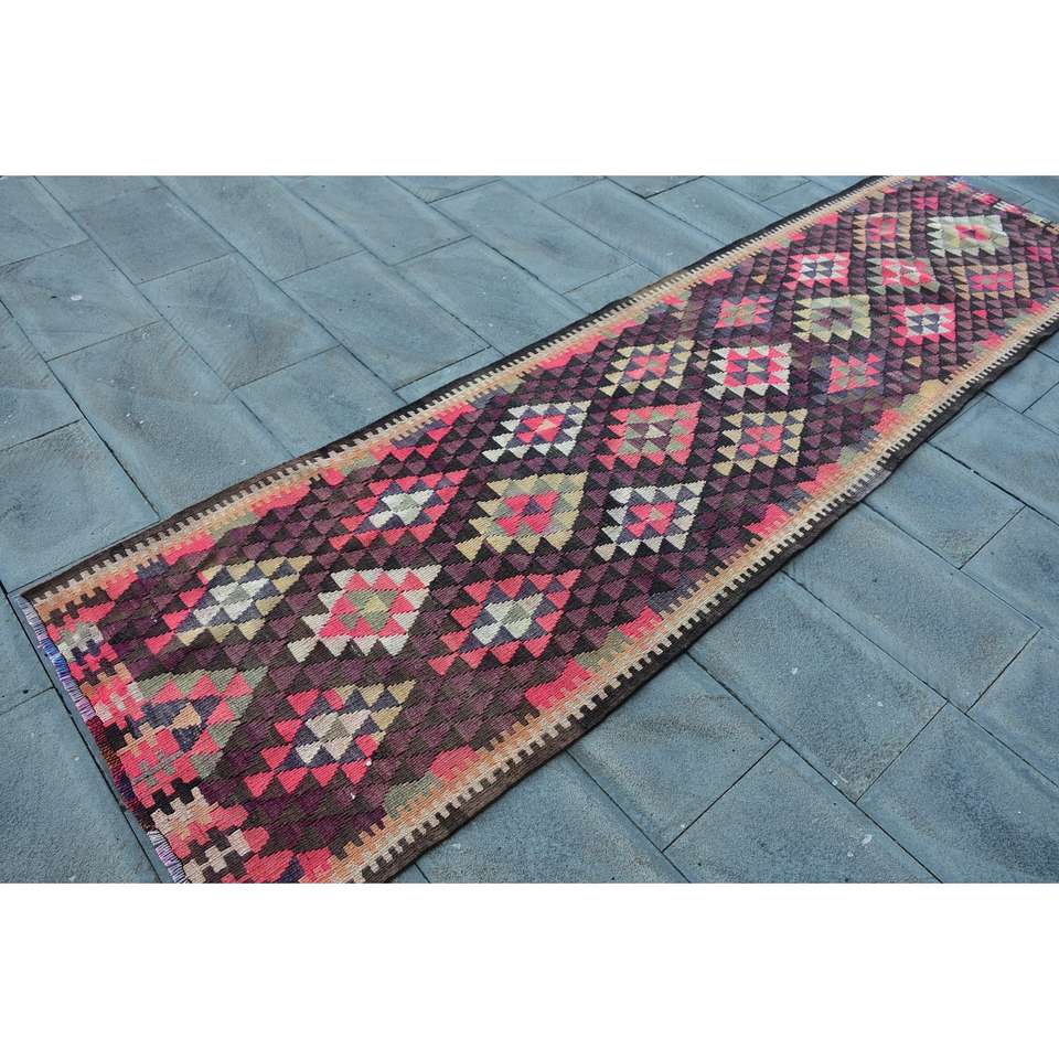 Alfombra Vintage de 2.9x10.3 pies, Alfombra Turca, Alfombra Oriental de Lana Roja Marrón