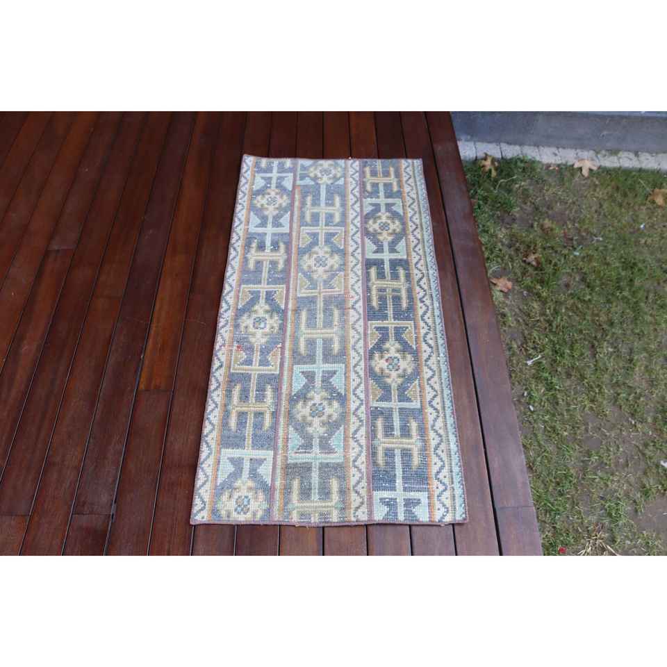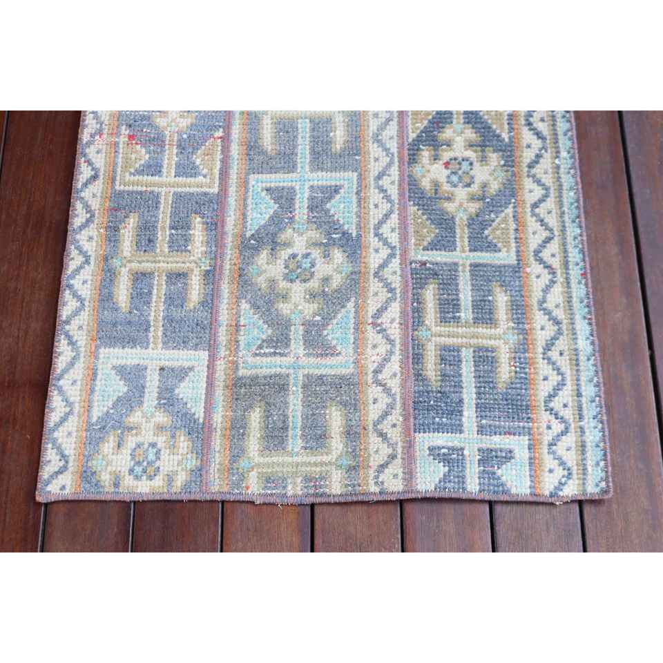 Alfombra Vintage de 2x3.9 pies, Alfombra Turca, Alfombra de Lana con Diseño Floral Azul