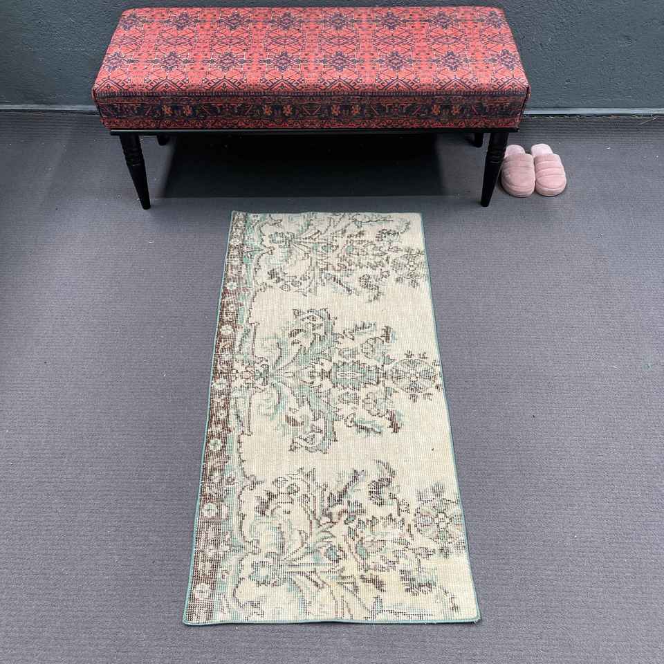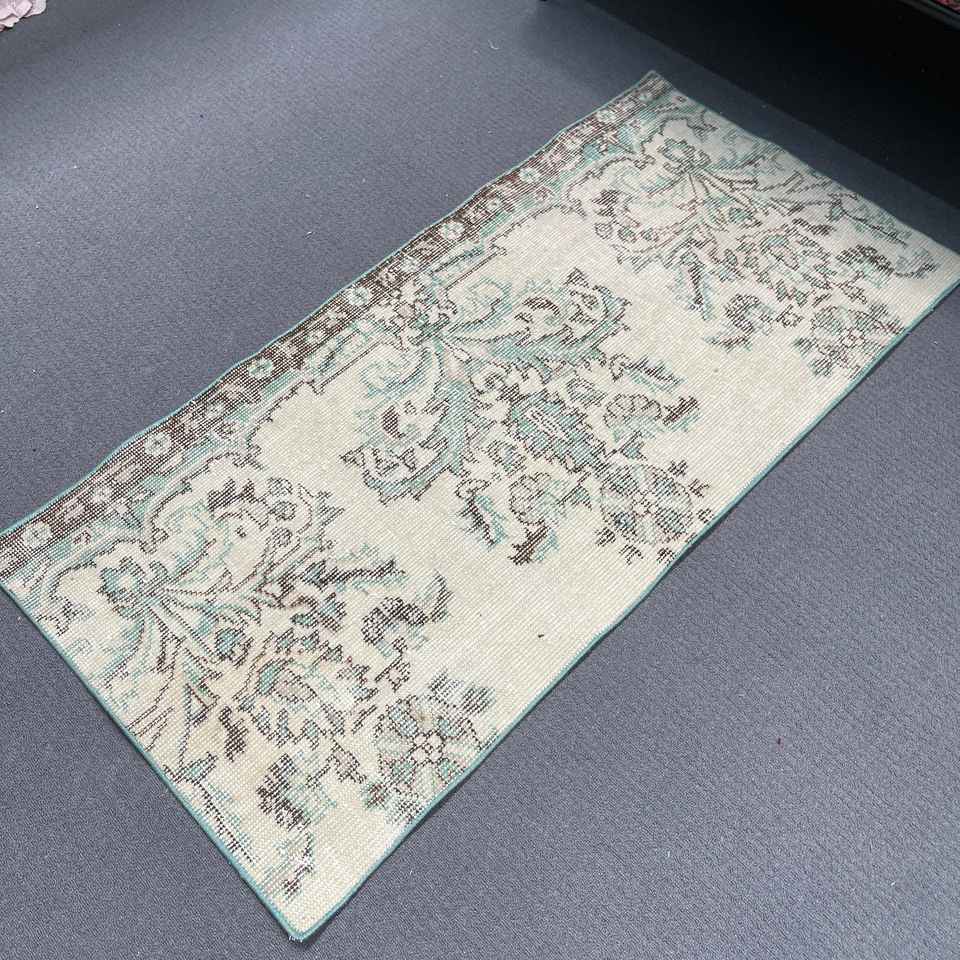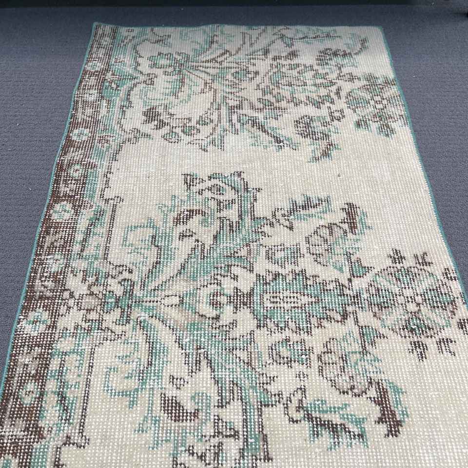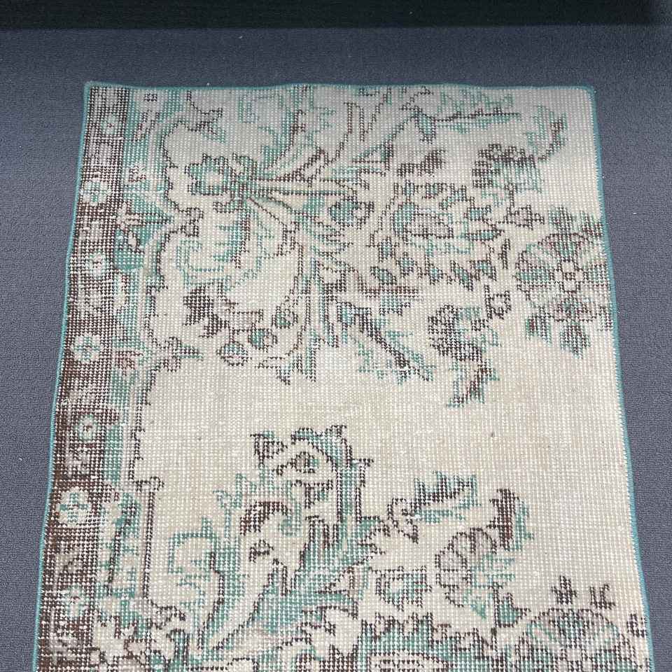 Alfombra Vintage de 2x4.2 pies, Alfombra Turca Pequeña, Alfombra Sólida Azul Marrón