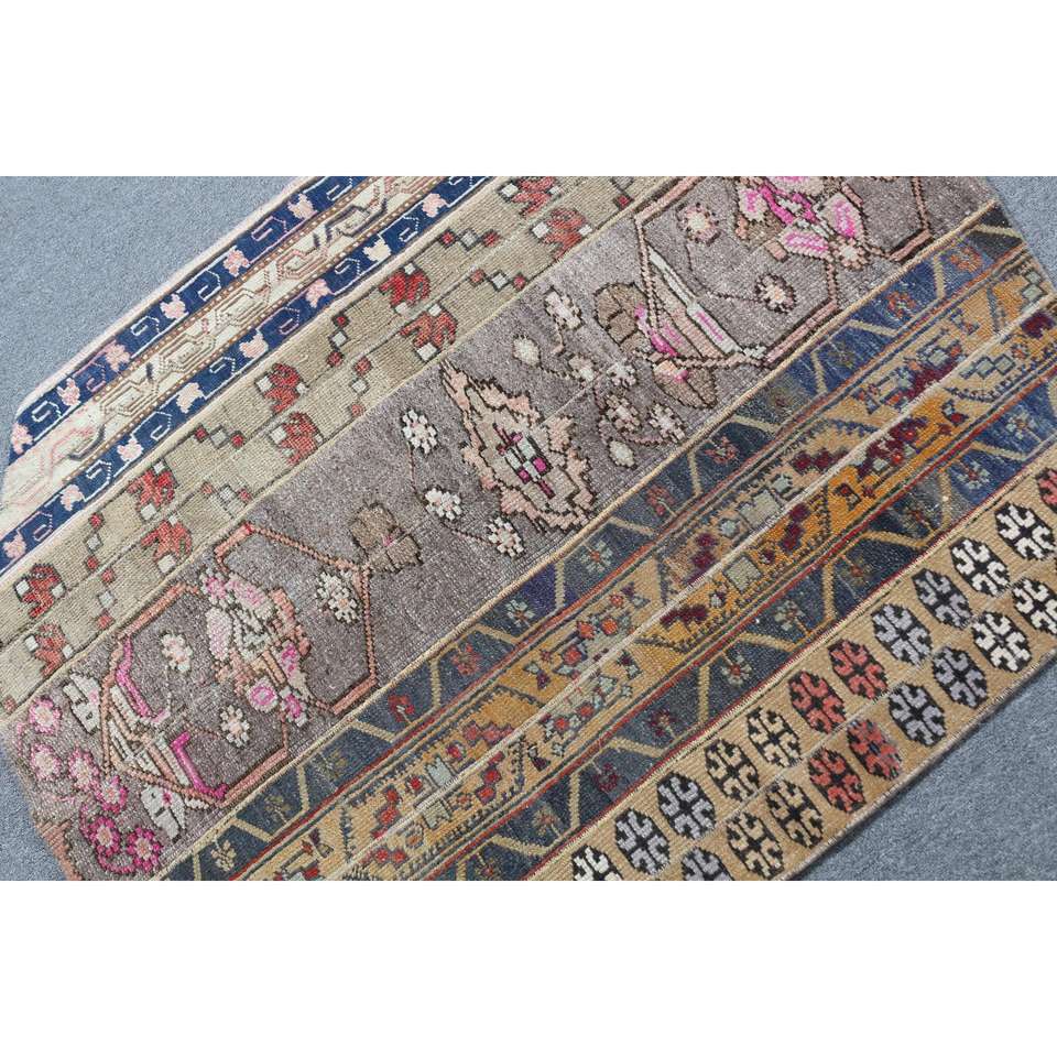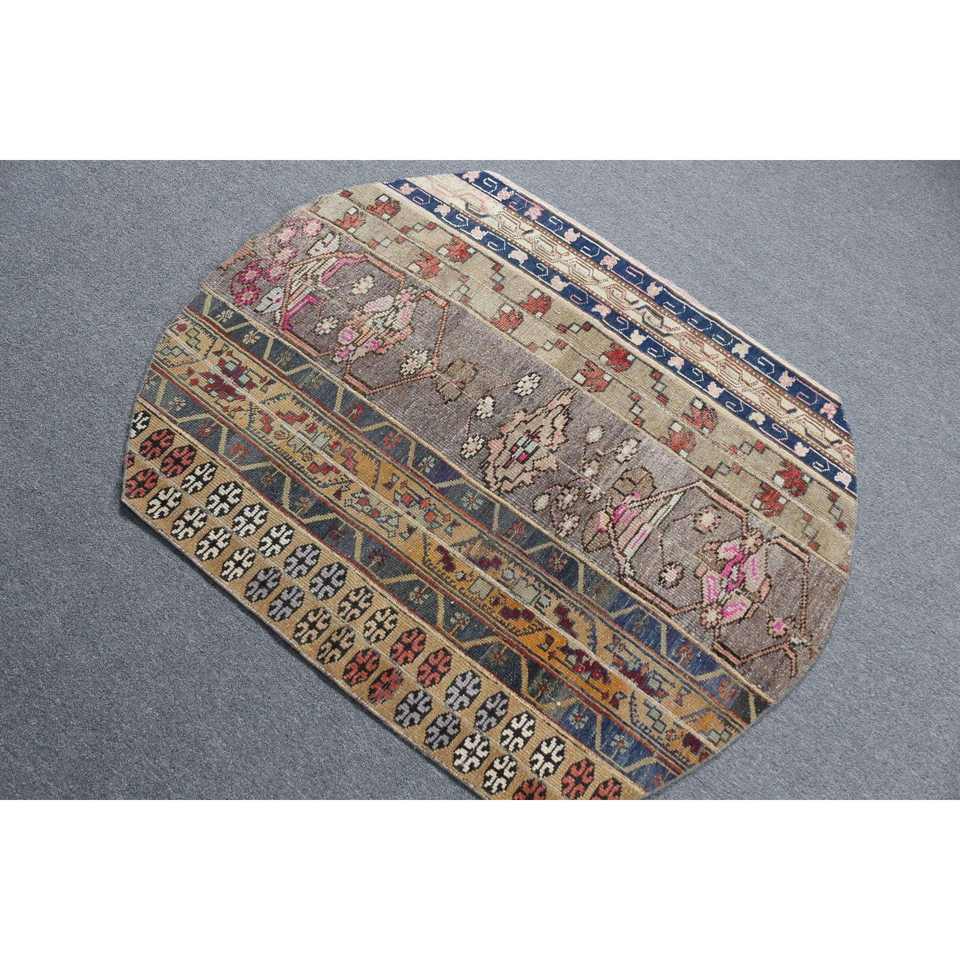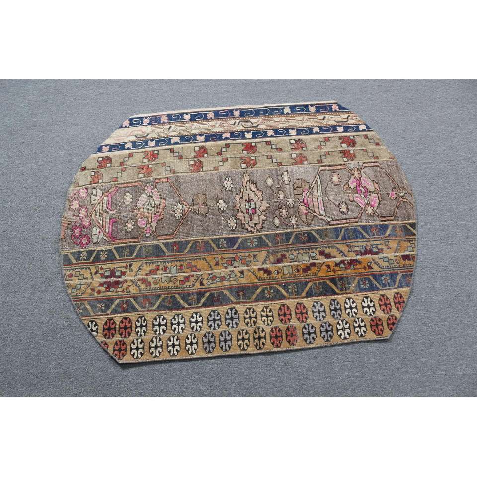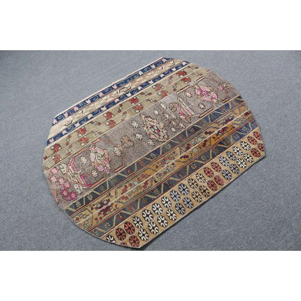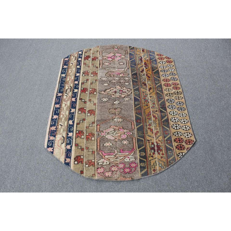 Alfombra Vintage de 3.4x4.3 pies, Alfombra Turca, Alfombra Azul a Rayas de Lana