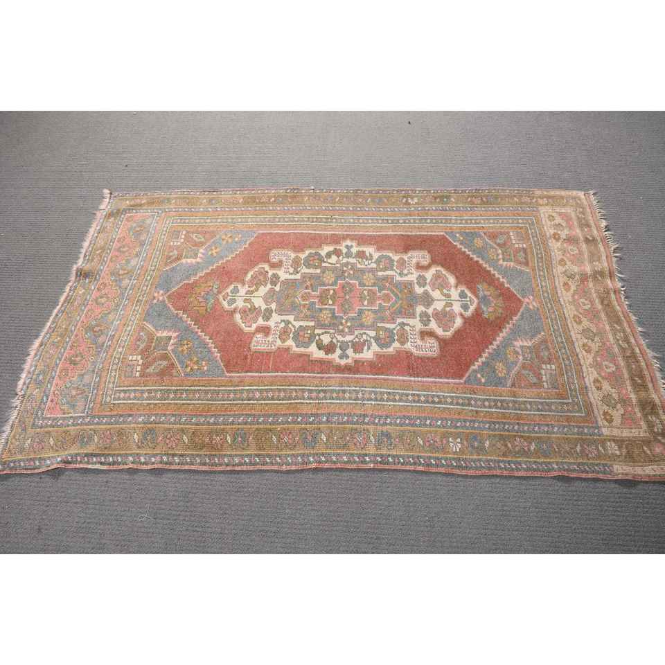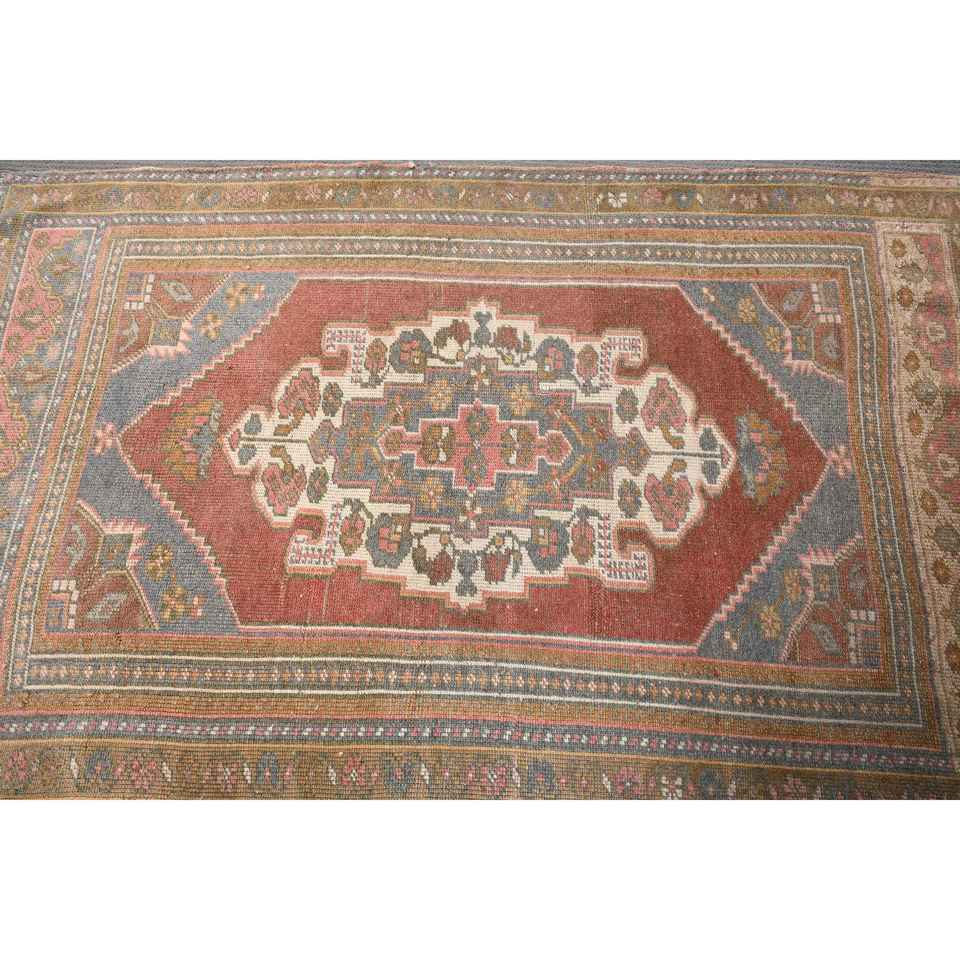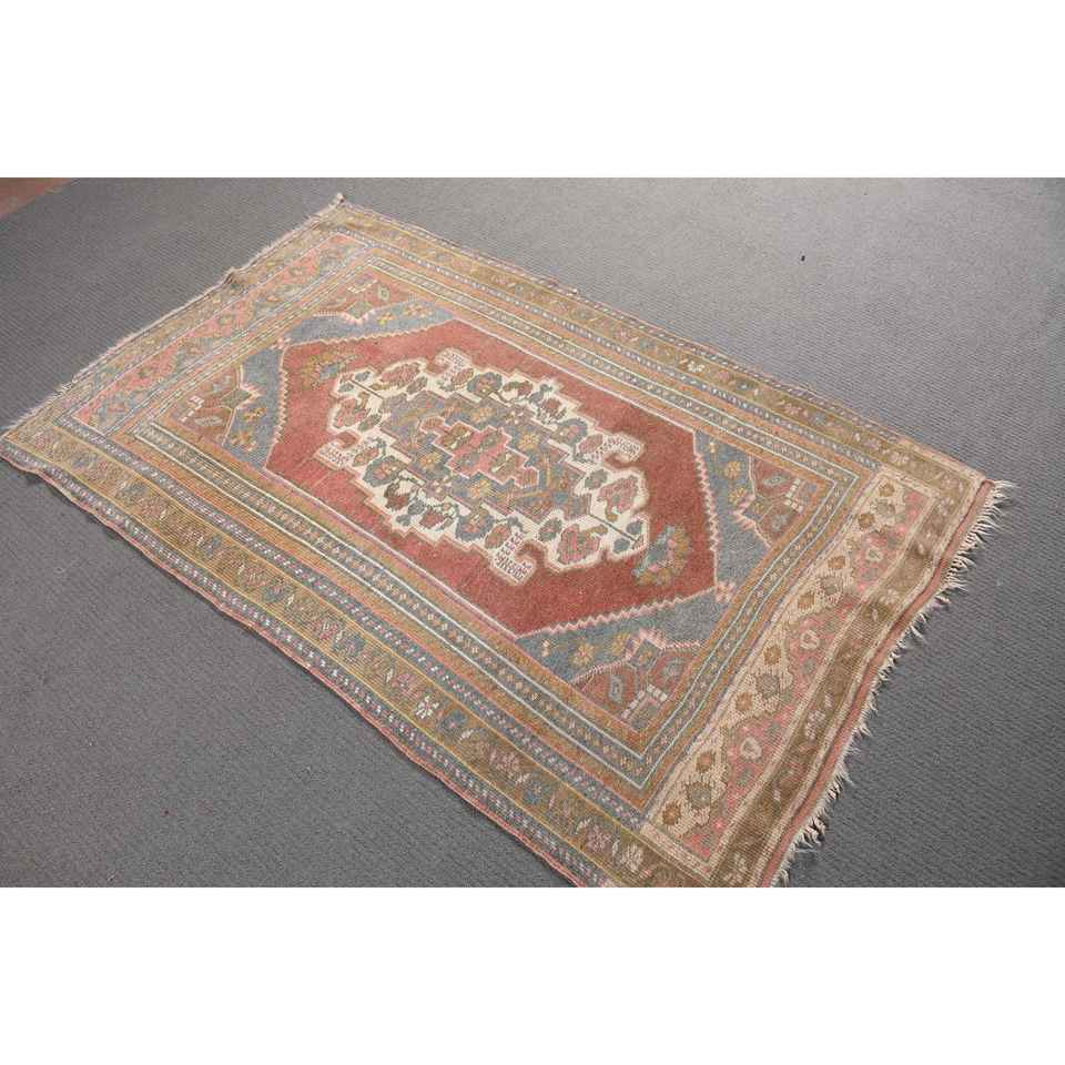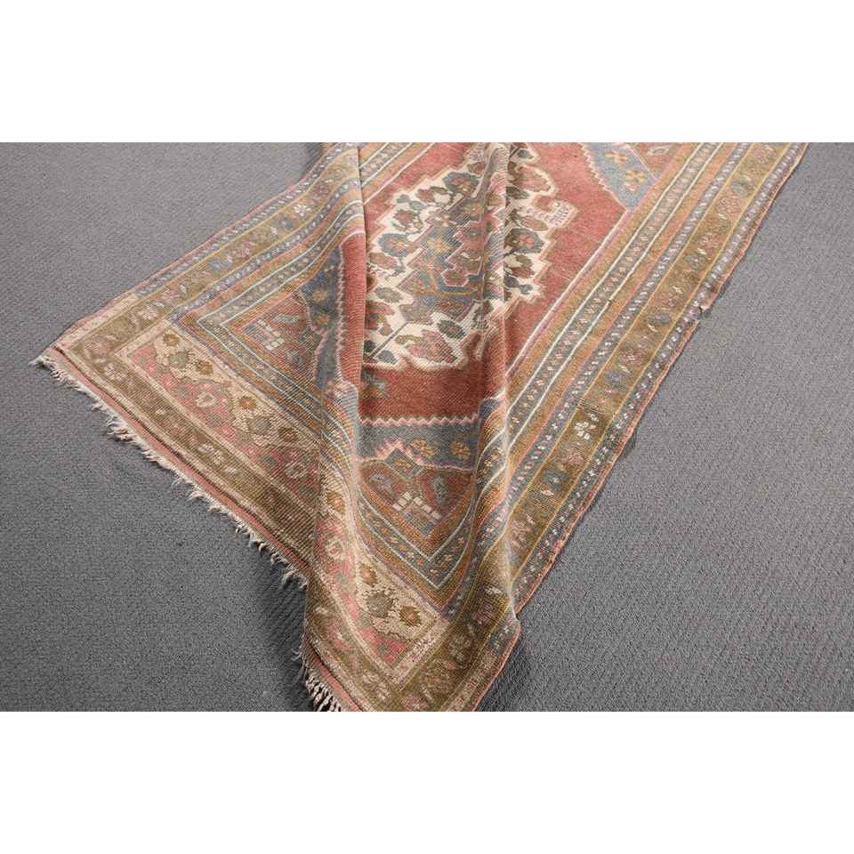Alfombra Vintage de 3.5x5.4 pies, Alfombra Turca Decorativa, Alfombra Marroquí de Lana Roja y Azul